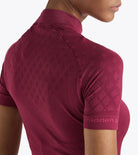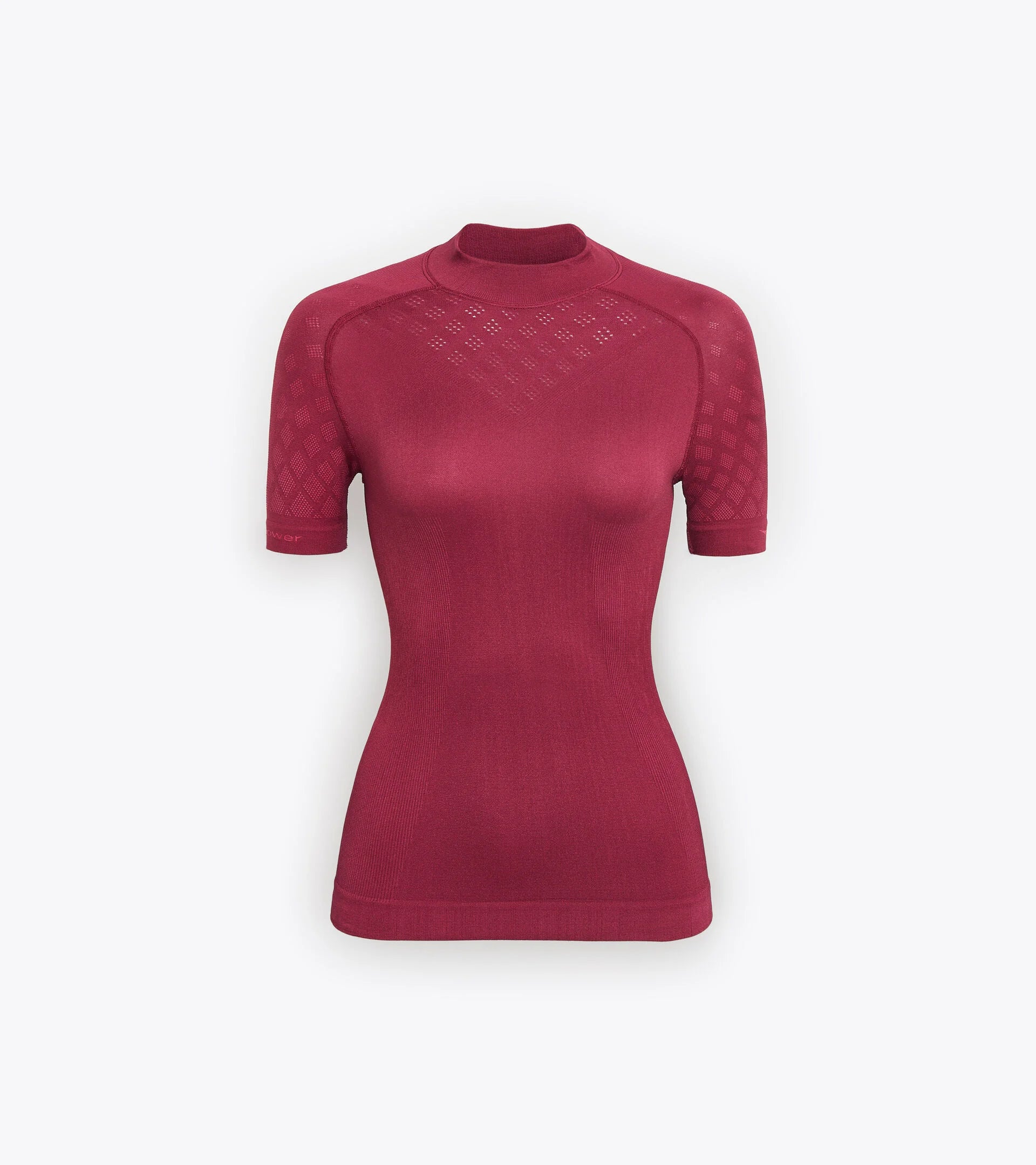 Girocollo, manica corta in morbida e leggera mischia di poliammide e polipropilene. Quest'ultimo - tono su tono - riveste la duplice funzione di mantenere il corpo asciutto ed evidenziare i loghi. Tecnologia DIA BREATH traspirabilità e leggerezza grazie alla particolore struttura in microfibra e alla conformazione alveare, DIA FIT Libertà di movimento e leggerezza