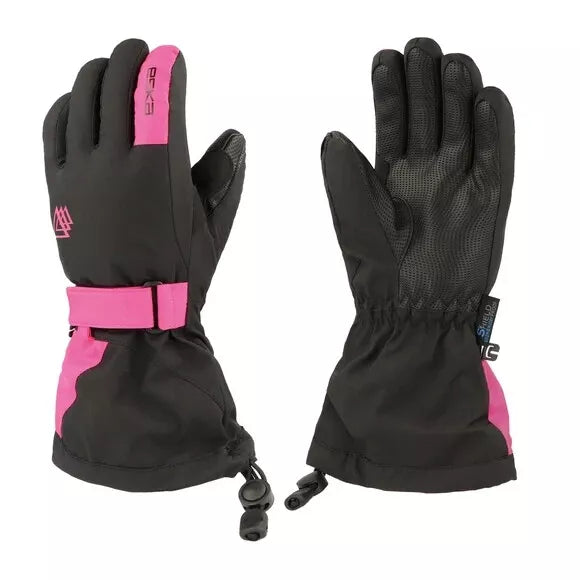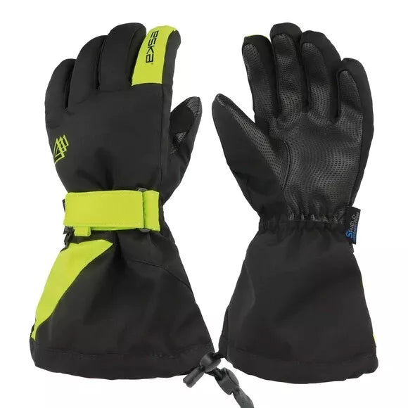 ESKA LINUX SHIELD guanti sci junior. L'orlo lungo e largo permette, grazie al suo cordino, di sistemare facilmente la manica dell'anorak nel guanto. Grazie alla membrana Eska Shield, le mani rimangono asciutte.
