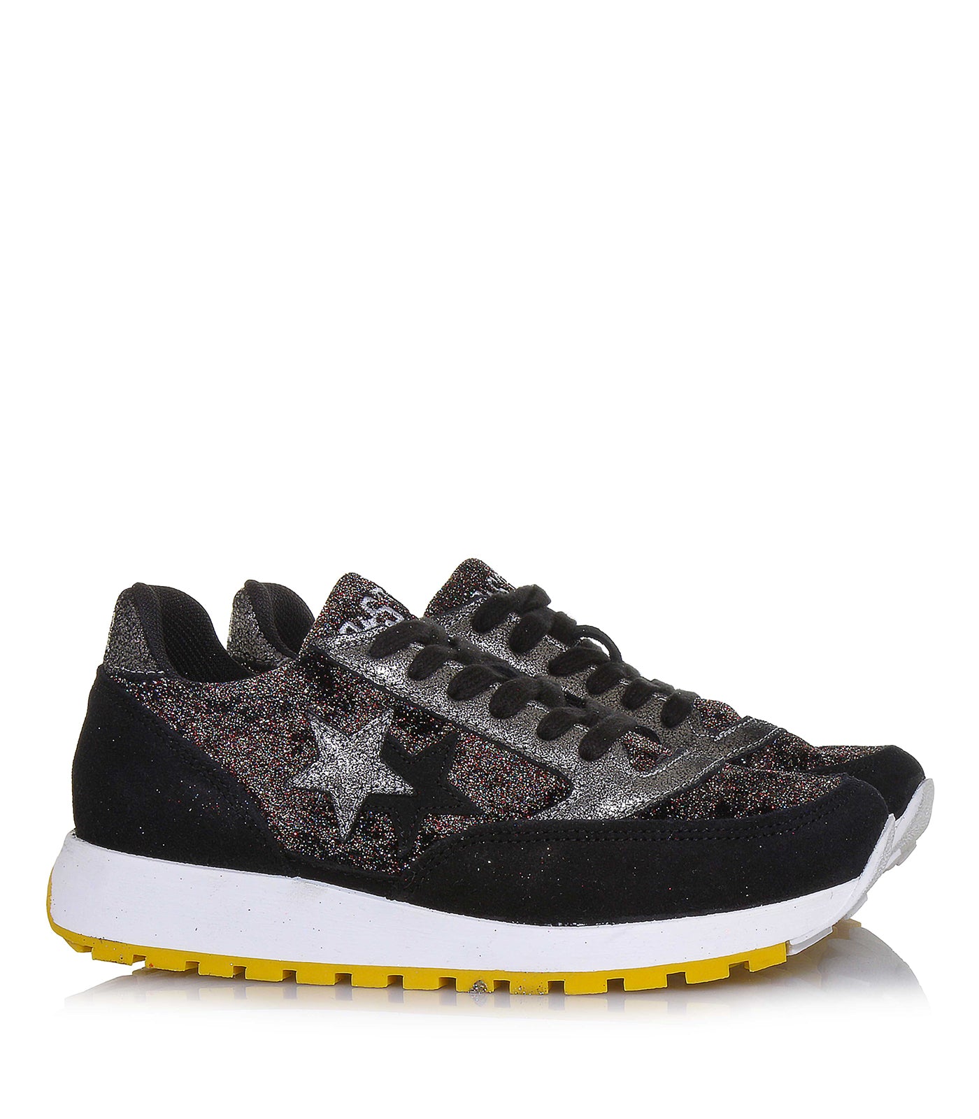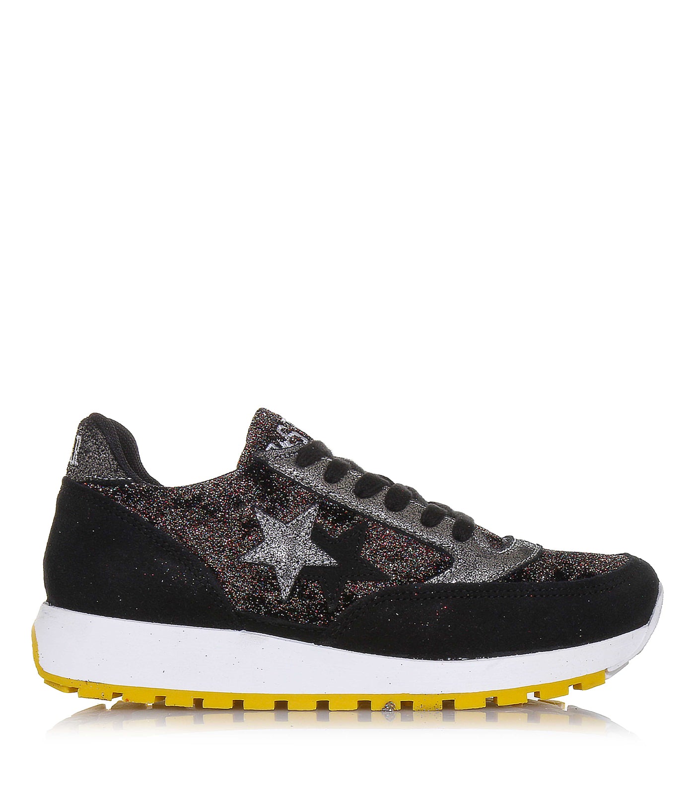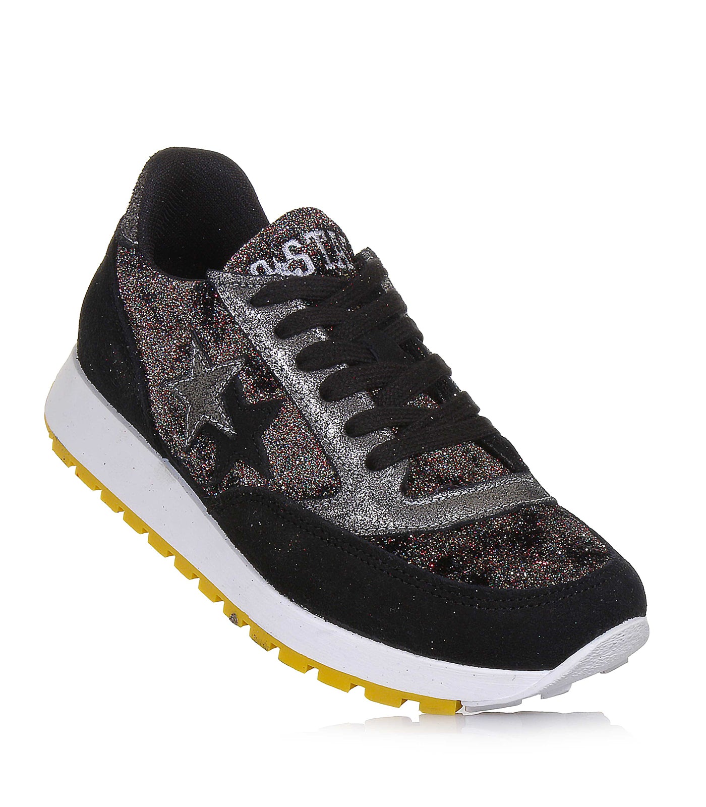 2Star è simbolo di una generazione sempre in movimento e molto attenta alle tendenze. Aggiorna il tuo look per la nuova stagione e acquista 2Star. Questa SNEAKERS, scarpa donna, nera glitterata con stelle, 2SD 1708 nero silver modello tomaia in pelle glitterata, ideale per passeggiate, comoda casual, da città