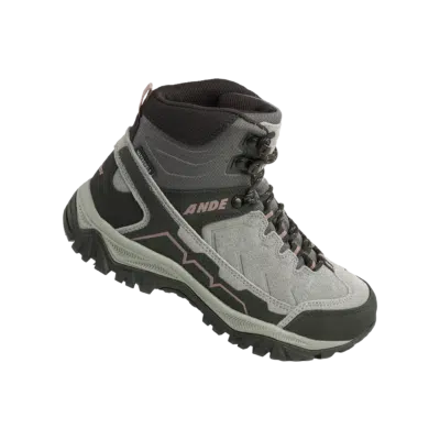 ANDE ESCURSIONISTA. Scarponcino in morbida pelle scamosciata dotato di membrana Watershield per il trekking di medio impegno. Modello interamente improntato al comfort: da un lato, il collarino anatomico protegge la caviglia senza sacrificarne comfort e libertà di movimento, dall'altro, l'intersuola in EVA espansa assicura un'ottima ammortizzazione, il che lo rende ideale anche per gli usi prolungati . Il tutto senza dimenticare particolarmente il grip, assicurato da un design aggressivo dei tasselli della suola.