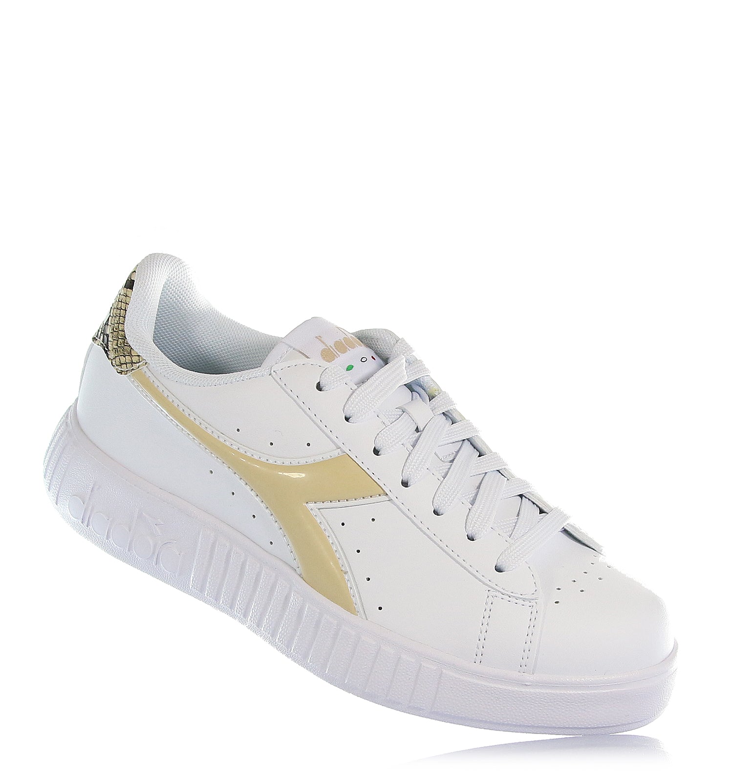 La sneakers che indosserai sempre dall'ufficio al tempo libero, un passe-partout everyday. Tomaia in similpelle bianca con fregio laterale beige lucido e dettaglio sul tallone animalier, per dare un tocco più alla moda. Non lasciartele scappare!