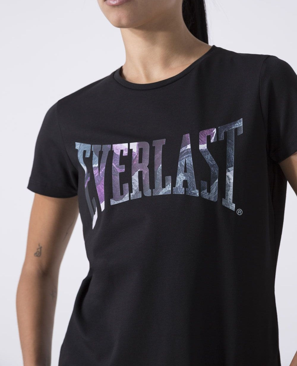 T-shirt realizzata in jersey stretch di cotone dalla vestibilità regolare. Il design semplice ed essenziale del capo si caratterizza per il logo Everlast stampato con una grafica astratta che esalta la femminilità del capo.
