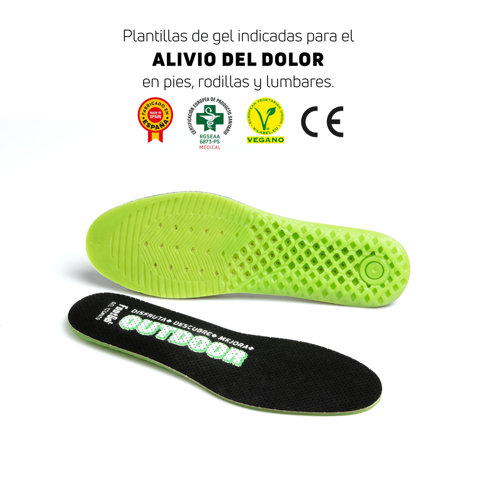 Esclusiva tecnologia Termocrep-gel consente una perfetta ammortizzazione sequenziale. Attualmente Footgel è uno dei principali marchi di solette. Ecologico. Prodotto vegano. Rimuovi la soletta esistente dalla scarpa e tagliala alla stessa misura per sostituirla.