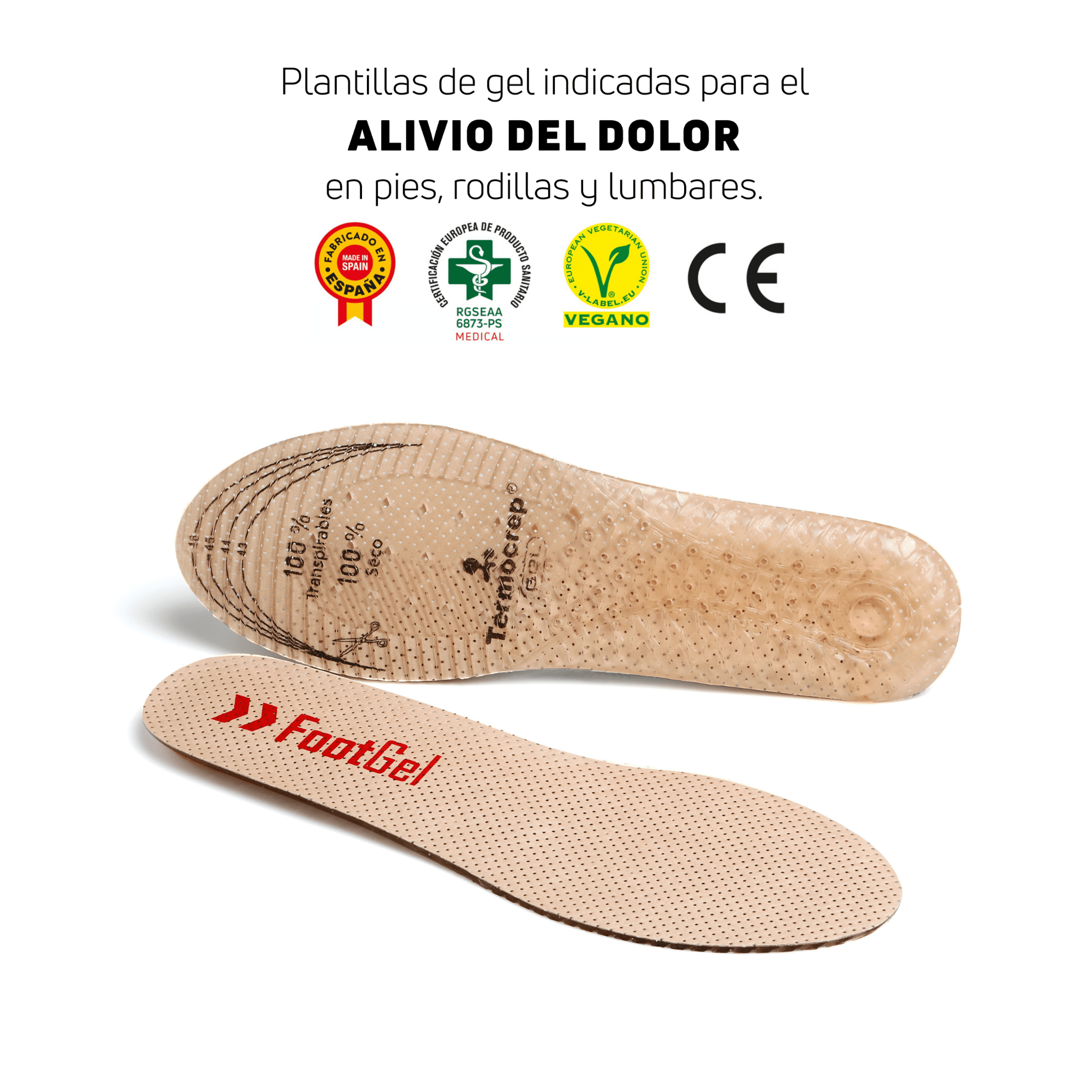 Esclusiva tecnologia Termocrep-gel consente una perfetta ammortizzazione sequenziale. Attualmente Footgel è uno dei principali marchi di solette. Ecologico. Prodotto vegano. Rimuovi la soletta esistente dalla scarpa e tagliala alla stessa misura per sostituirla.