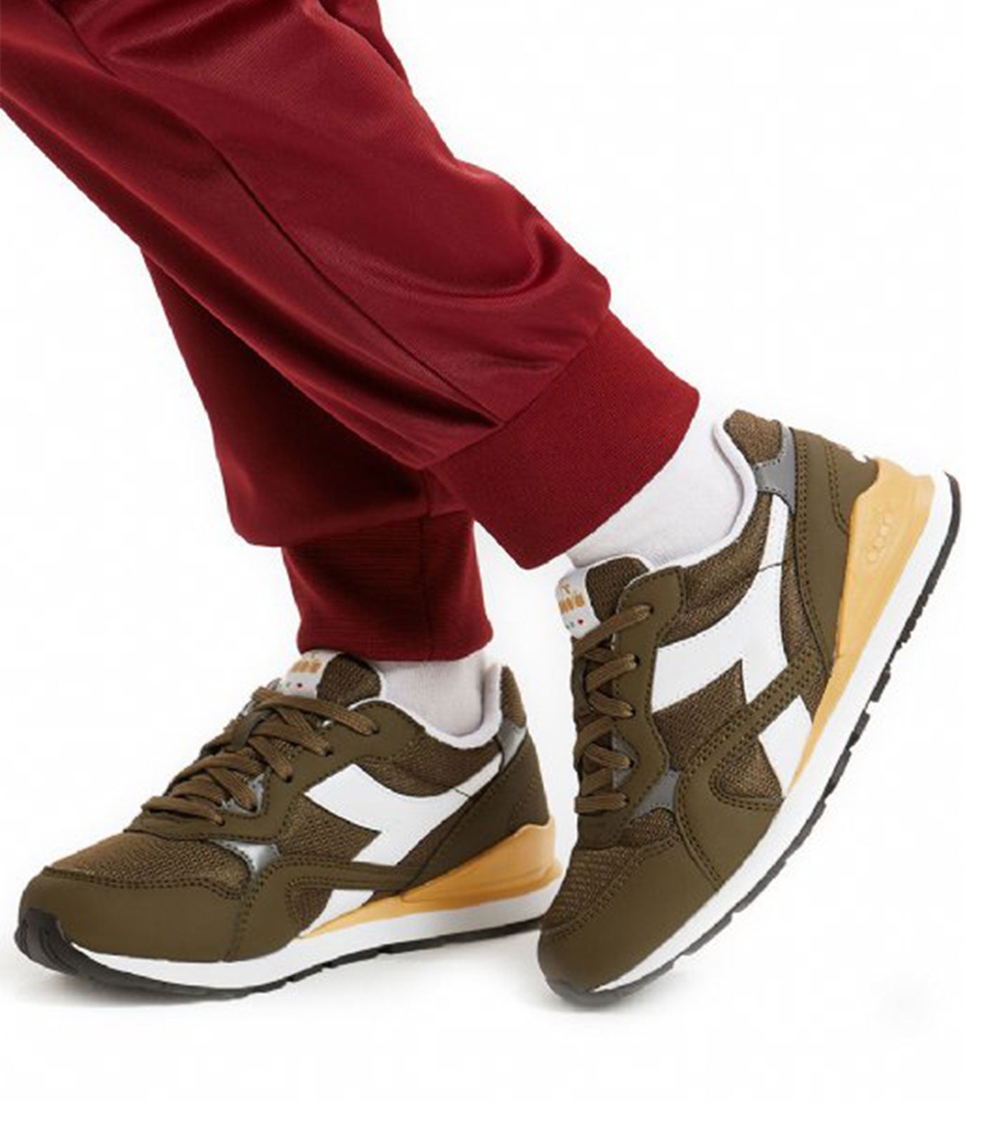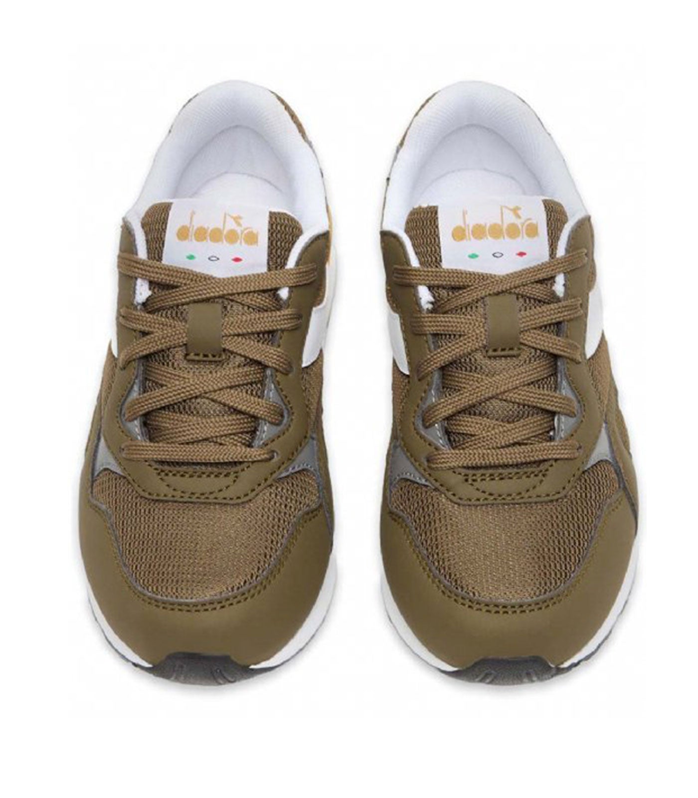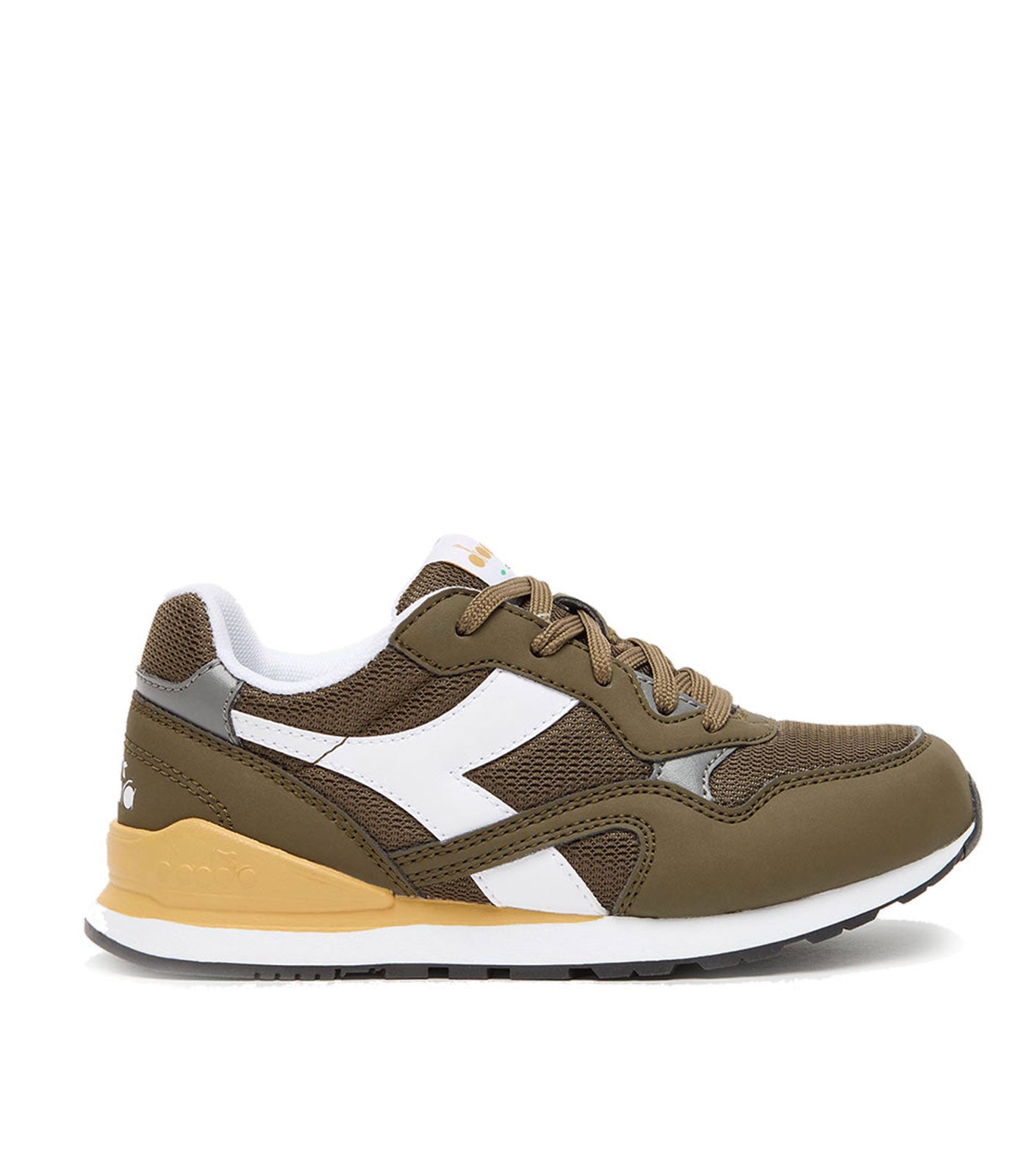 Sneakers per bambini/e in pelle sintetica. Fregio a contrasto e logo diadora 5palle bianco. La suola è bicolore. Il modello n. 92 è un classico modello da retrorunning che unisce comfort e sportività.
