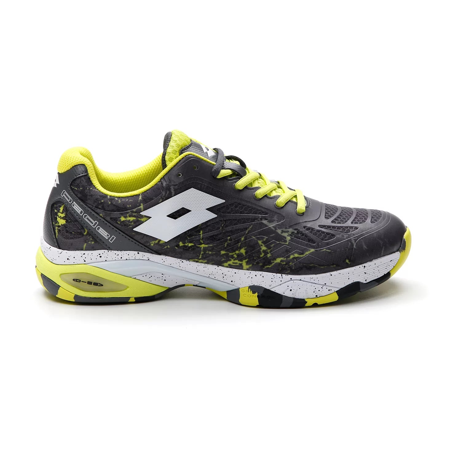 LOTTO SUPERRAPIDA 200 è costruita con un battistrada inferiore completamente nuovo con un design geometrico appositamente sviluppato per garantire la massima trazione e resistenza all'usura sulle superfici del padel. La tomaia combina Kurim multistrato per aumentare stabilità e durata e sottofondo in rete di poliestere per garantire traspirabilità e leggerezza. Il nuovo battistrada PADELTURF è stato progettato con tacchetti irregolari per garantire un'ottima trazione grazie alla loro struttura a linee parallele, specificamente unite a forma di “S” per una maggiore stabilità anche nei movimenti laterali. Il battistrada è stato appositamente sviluppato per ottenere le migliori prestazioni sul campo da padel, massimizzando allo stesso tempo la resistenza all'usura causata dall'attrito con le superfici sintetiche.