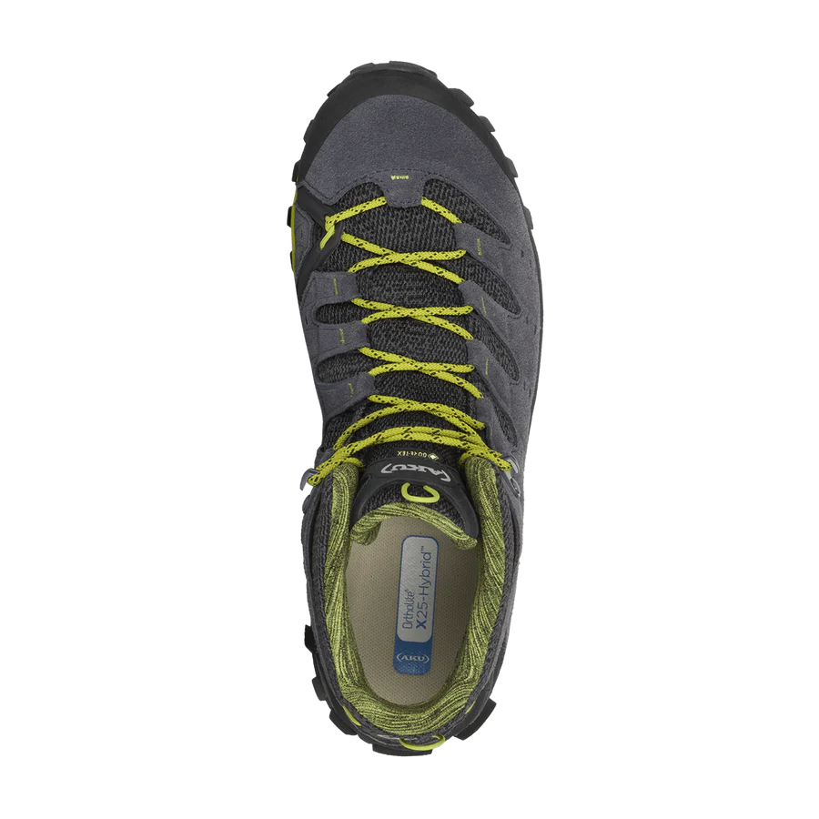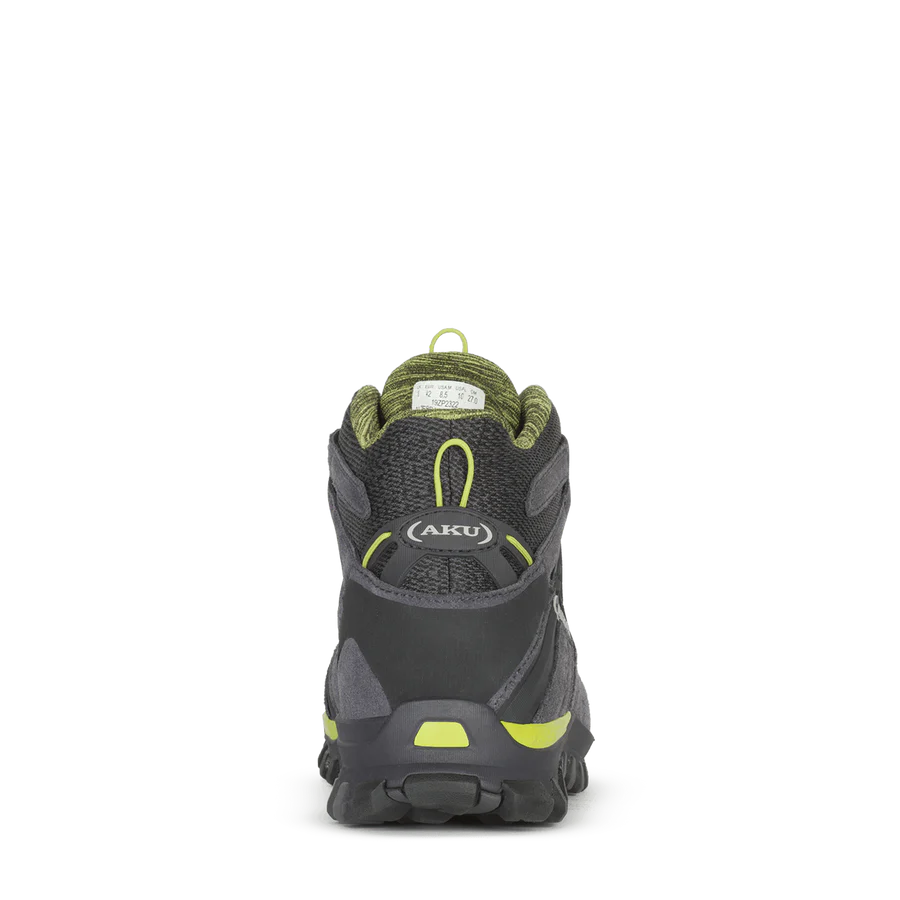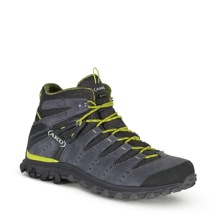Calzatura leggera, versatile e traspirante, per utilizzo dinamico su terreni di media difficoltà. La tomaia è composta da due strutture: una esterna in scamosciato articolata da elementi indipendenti che avvolgono il piede in modo anatomico una interna in air mesh con avvolgimento a lembi sovrapposti per assecondare lanatomia del piede. La fodera in Gore-Tex® è di due tipologie: una elastica per la zona del collo-piede e una più protettiva per il resto della fodera. La costruzione asimmetrica della suola e tomaia con lesclusiva tecnologia AKU Elica Natural Stride System garantisce unottimale distribuzione del carico sulla superficie plantare e il miglioramento del meccanismo di rullata. Il battistrada AKU con speciale mescola Tenuta garantisce uneccellente aderenza.