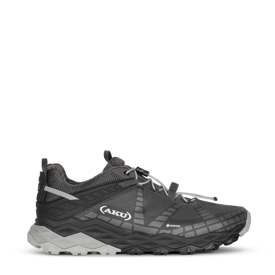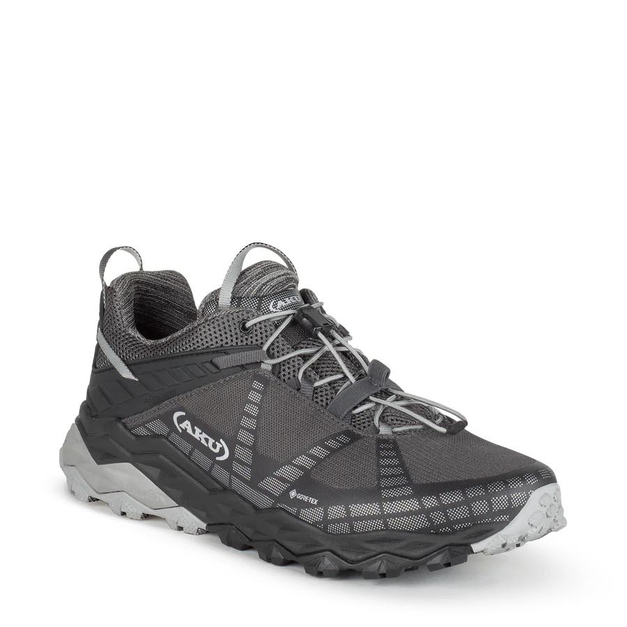Calzatura da escursionismo veloce e per attività dinamiche, adatta per avventure off-road dov'è richiesta trazione, protezione e alta ammortizzazione. La suola Vibram Traction Lugs con Megagrip e zeppa High Cushion e High Rebound EVA offre aderenza e ammortizzazione sorprendenti. Addotta la tecnologia Dynamic Fit, che permette di adattare dinamicamente la tensione del tallone al proprio passo con un migliore comfort e stabilità e il sistema AKU Elica Natural Stride System per favorire l'efficienza biodinamica.