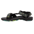Sandalo a strappi con struttura in simil-neoprene e battistrda dotato di un buon grip per facili escursioni in giornata, specialmente in zone marittime.