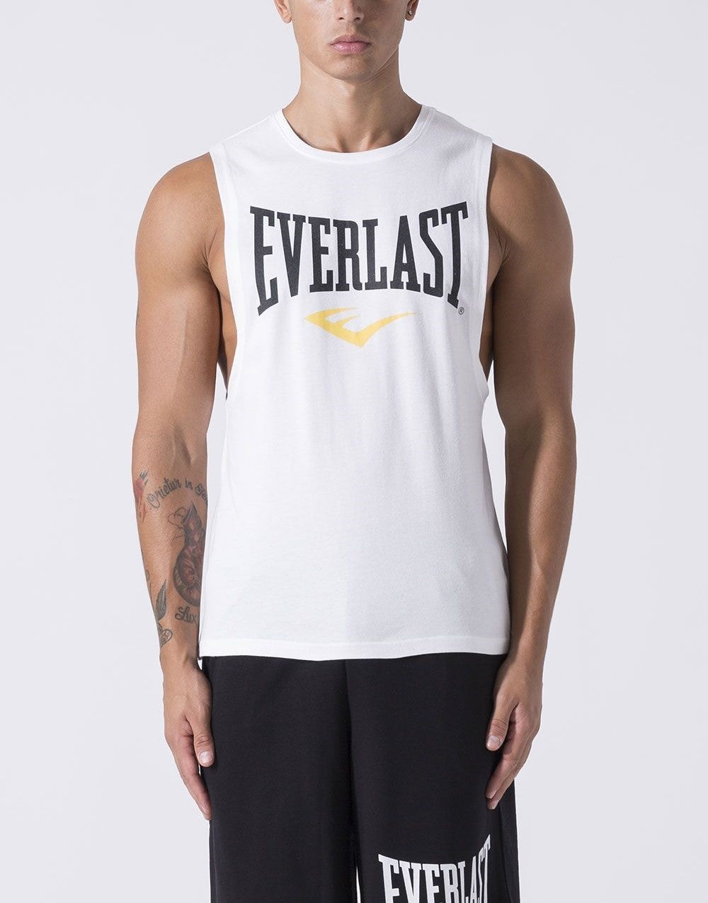 Canotta in comodo jersey di cotone e dalla vestibilità regolare. Il capo si caratterizza per un design sportivo, con giromanica profondo, che garantisce ampia libertà nei movimenti durante le sessioni di allenamento. Sul davanti è presente la stampa in contrasto del logo e dell'icona Everlast. Composizione 100% Cotone, Prodotto in India