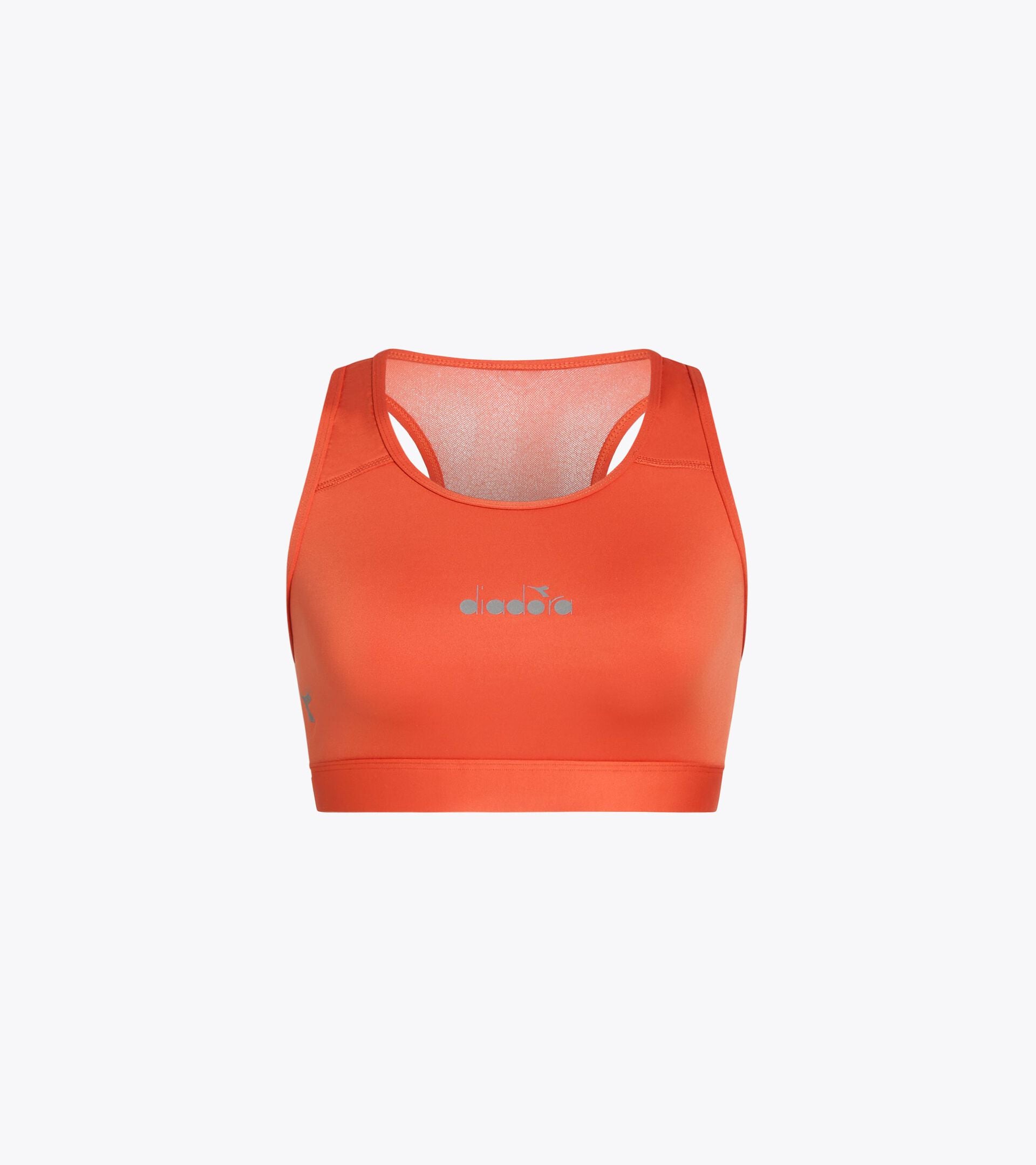 Reggiseno sportivo da corsa a medio impatto, realizzato in poliammide elasticizzato ad alta compressione. Schiena in mesh leggera con effetto tulle per garantire il giusto livello di traspirabilità.