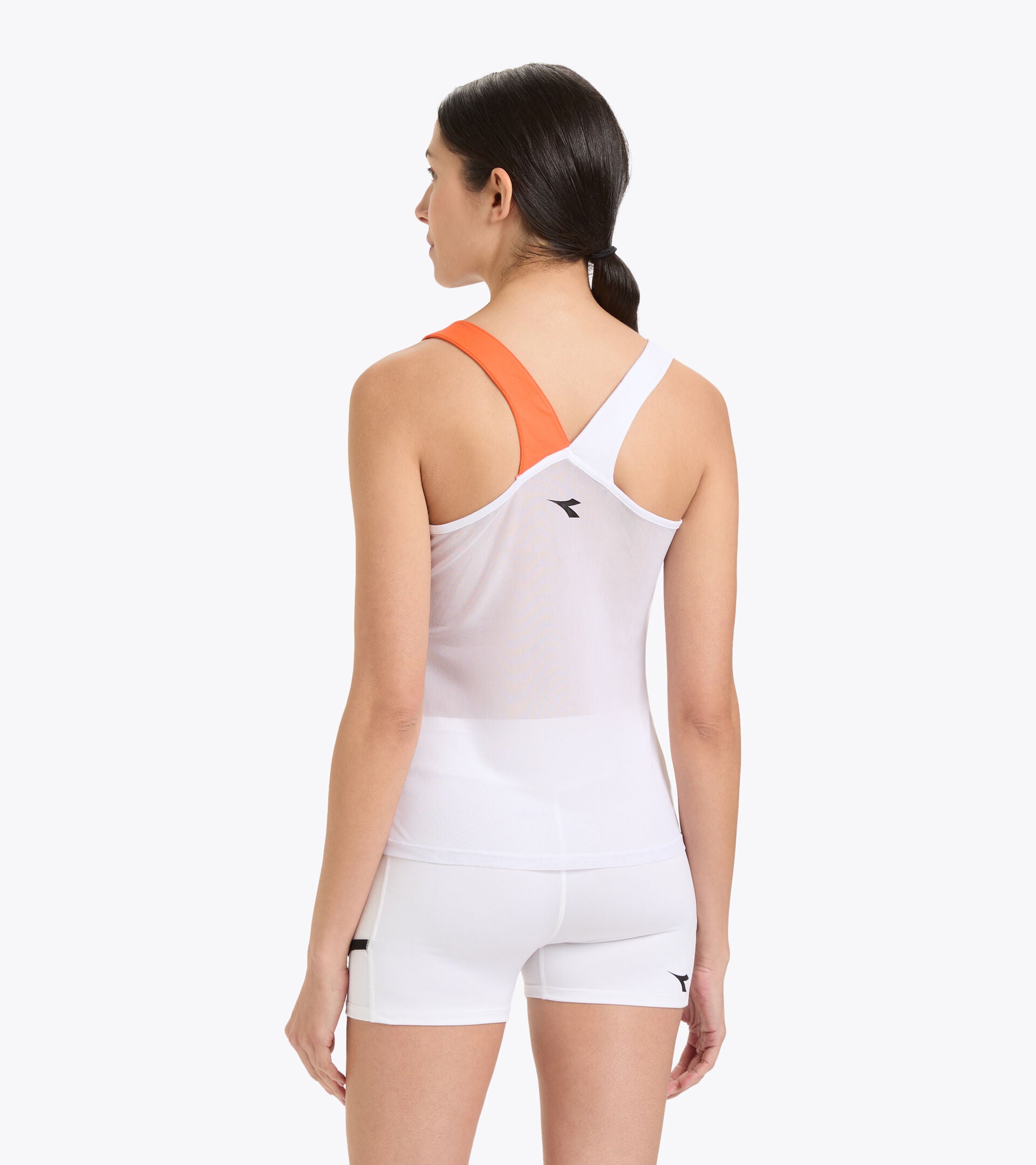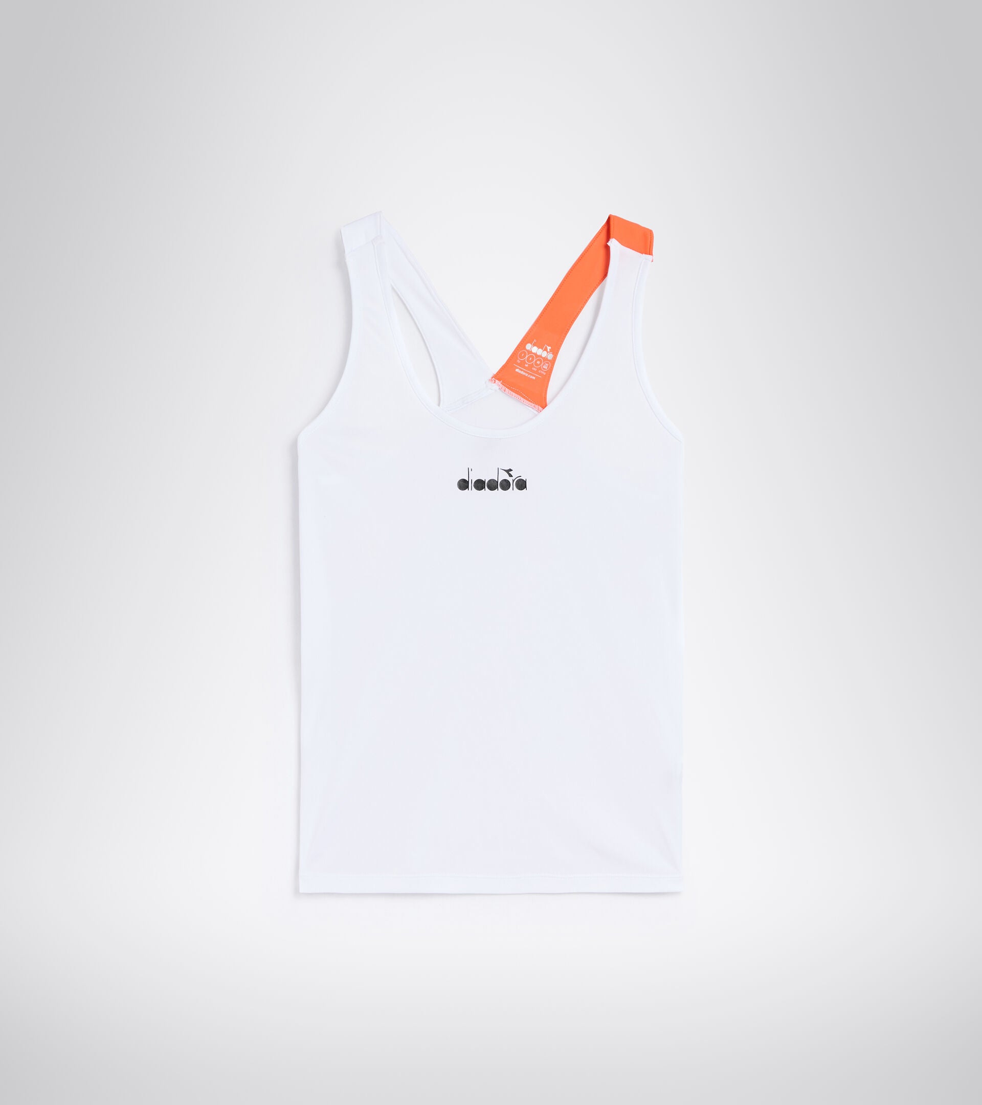 Il modello L. Tank è una canotta da tennis da donna in poliestere con spalline larghe , schiena rivestita in rete effetto tulle e cinturino a contrasto. 100% poliestere