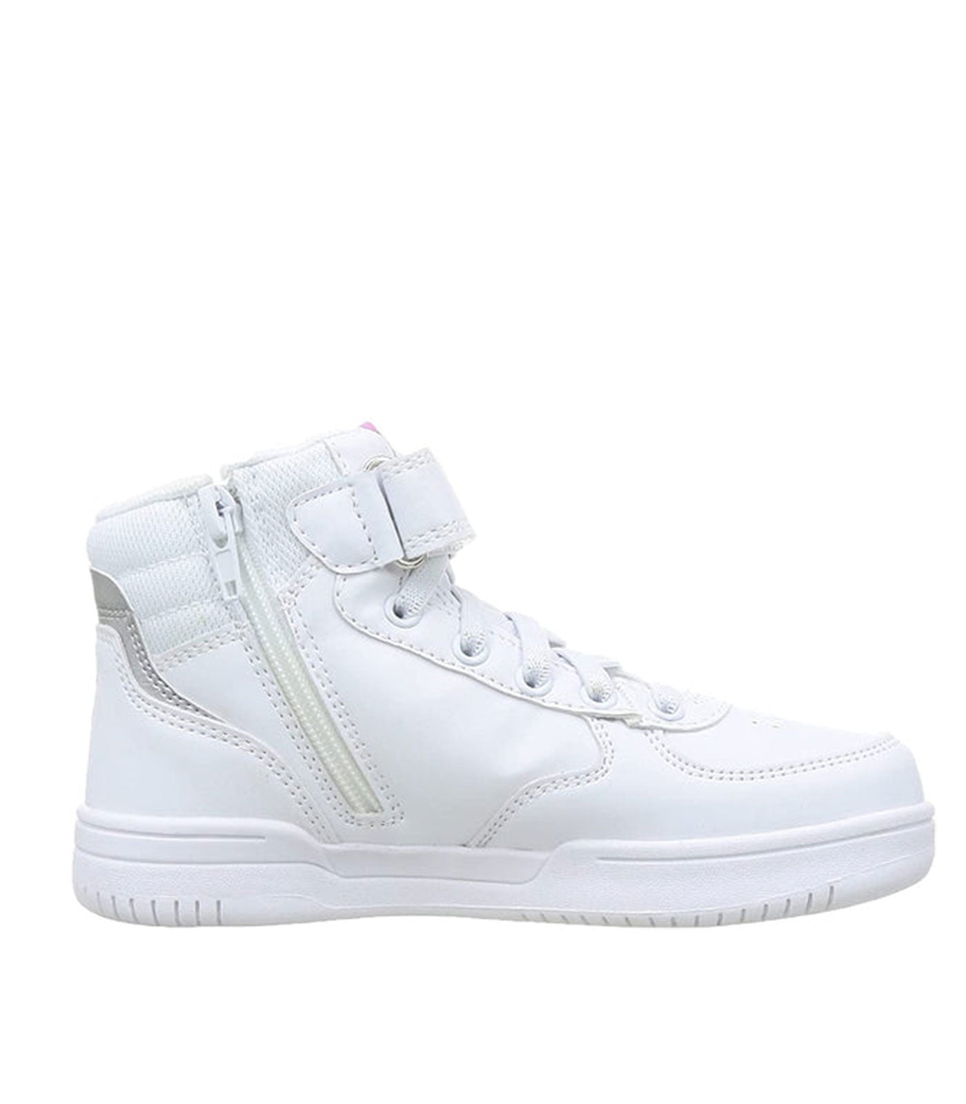 Scarpe da ginnastica per bambini/e in pelle sintetica con chiusura a zip. Il modello Raptor Mid GS, come il corrispettivo da adulto, si arricchisce del fregio a contrasto e il collarino in tessuto.