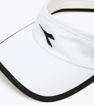 Visiera tennis unisex in leggera microfibra, bordi a contrasto, fascia frontale tergisudore e larghezza regolabile.