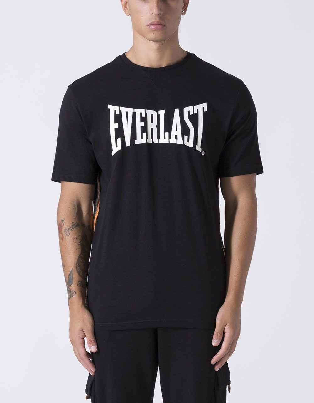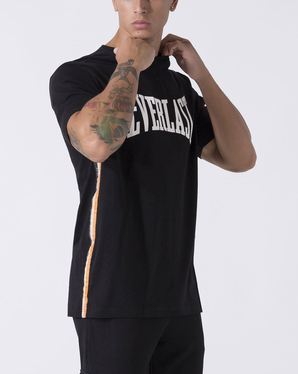 T-shirt in comodo jersey di cotone dalla vestibilità regolare. Il capo si caratterizza per un tape tricolore applicato lungo i fianchi che ne esalta il gusto sportivo. Il logo Everlast è stampato in contrasto al centro. Composizione 100% Cotone, prodotto in India