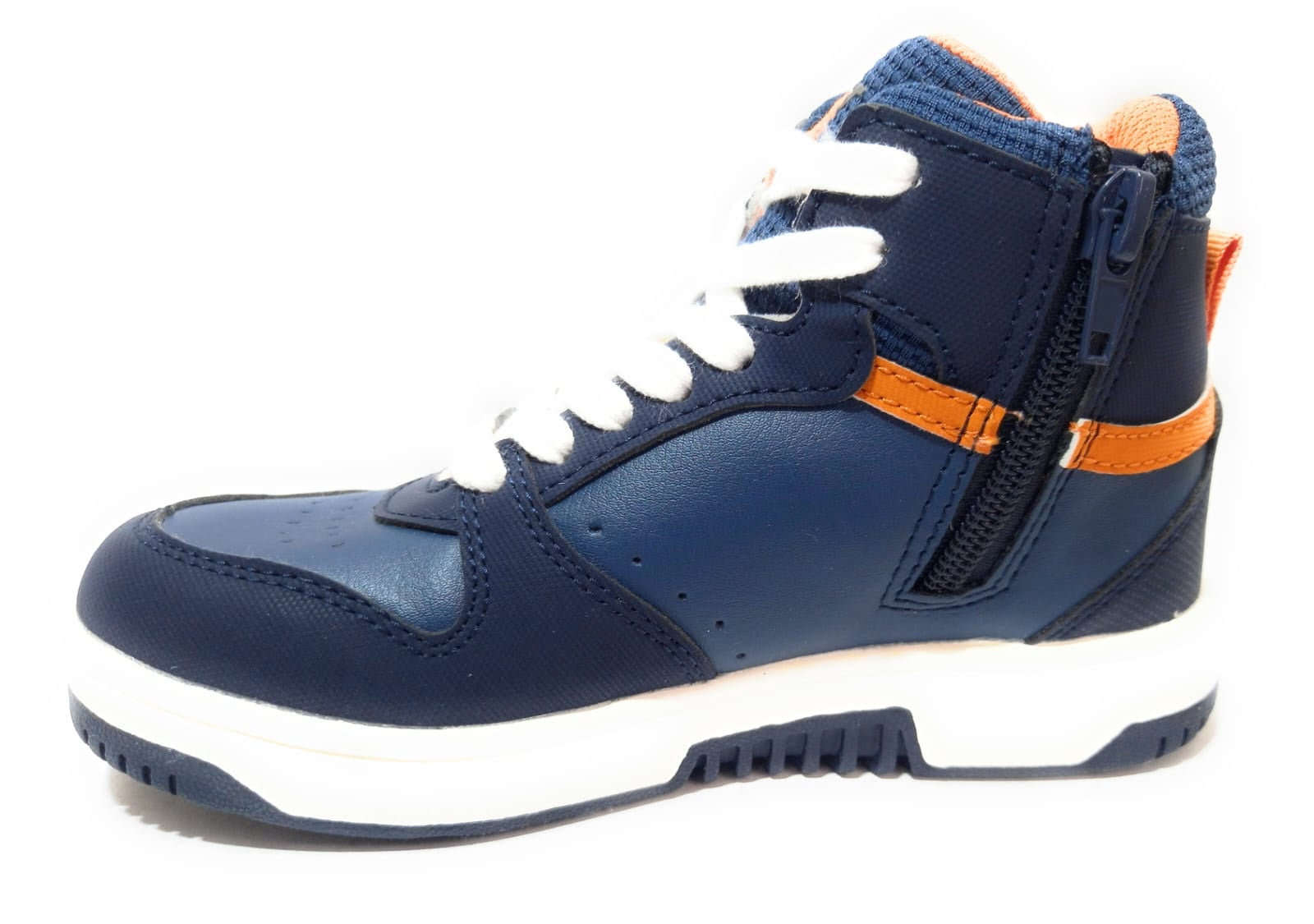 Scarpa da bambini ispirata al mondo del basket leggera, confortevole, facile da indossare con cinturino e cerniera laterale. Tomaia in tessuto sintetico e suola in gomma con dettagli e colori adatti sia per bimbi che per bimbe. Disponibile sia nella versione low che mid. Sottopiede in AMF - Air Memory Foam per garantire il massimo comfort