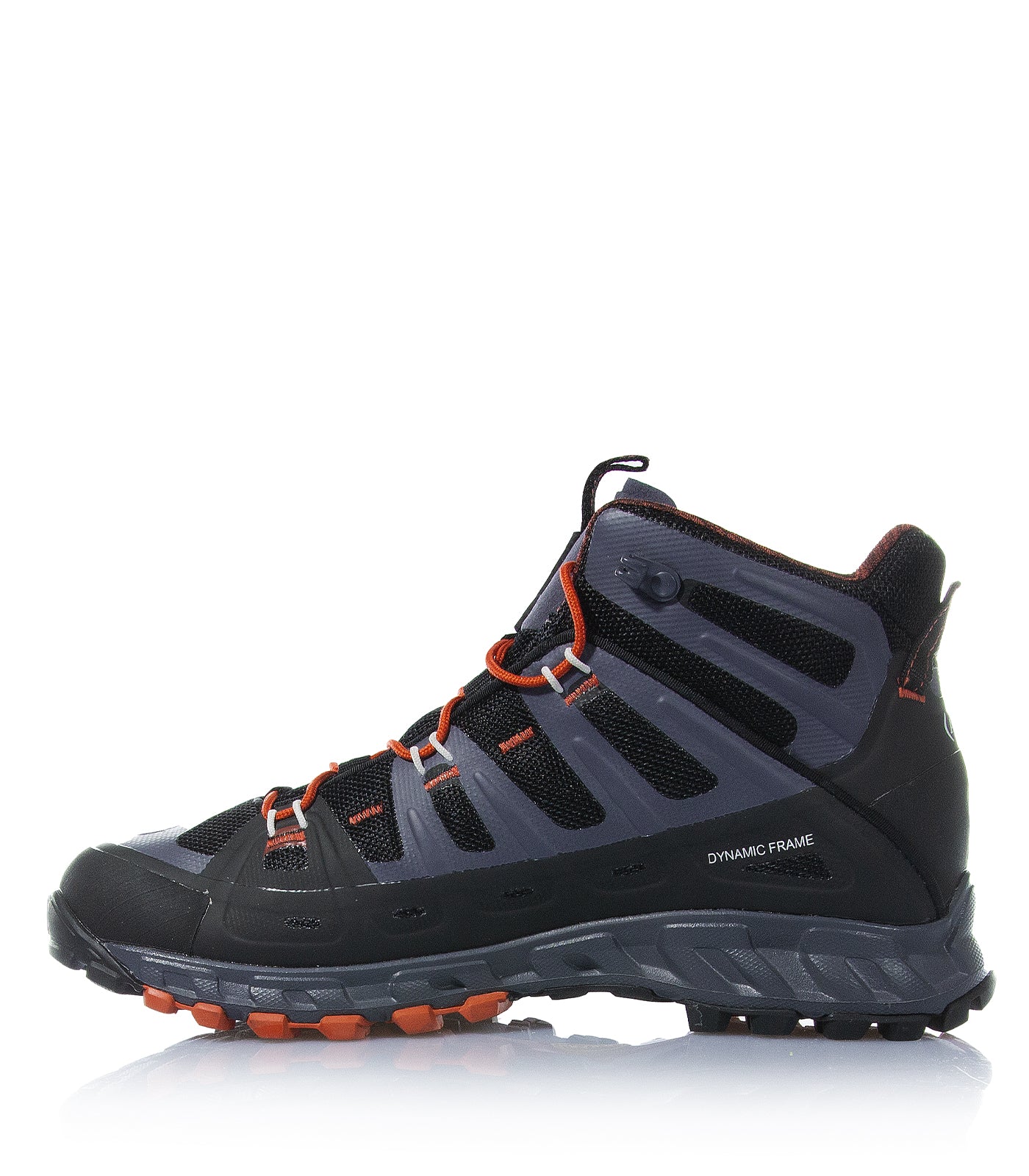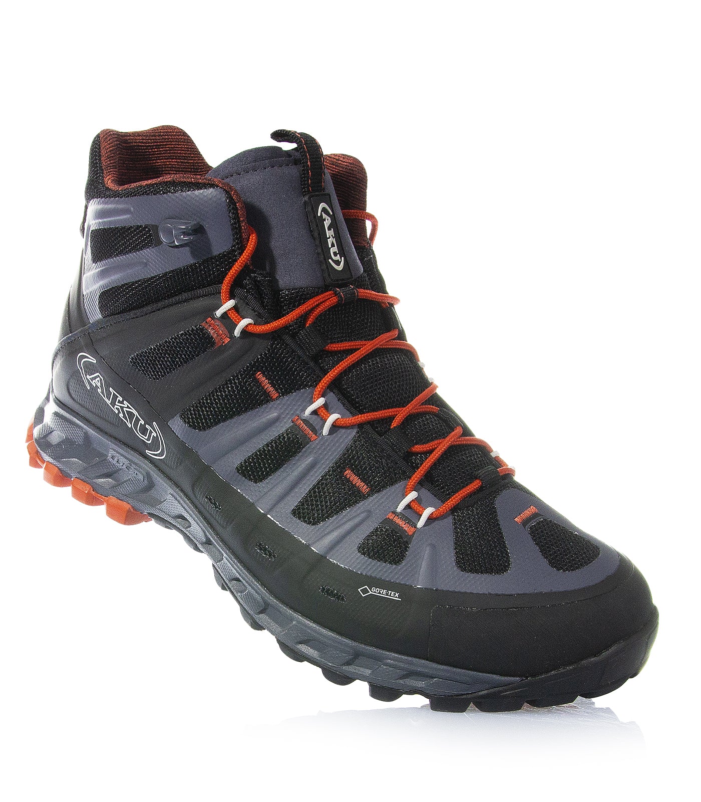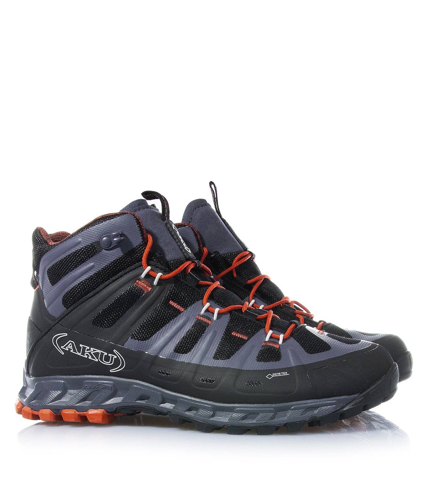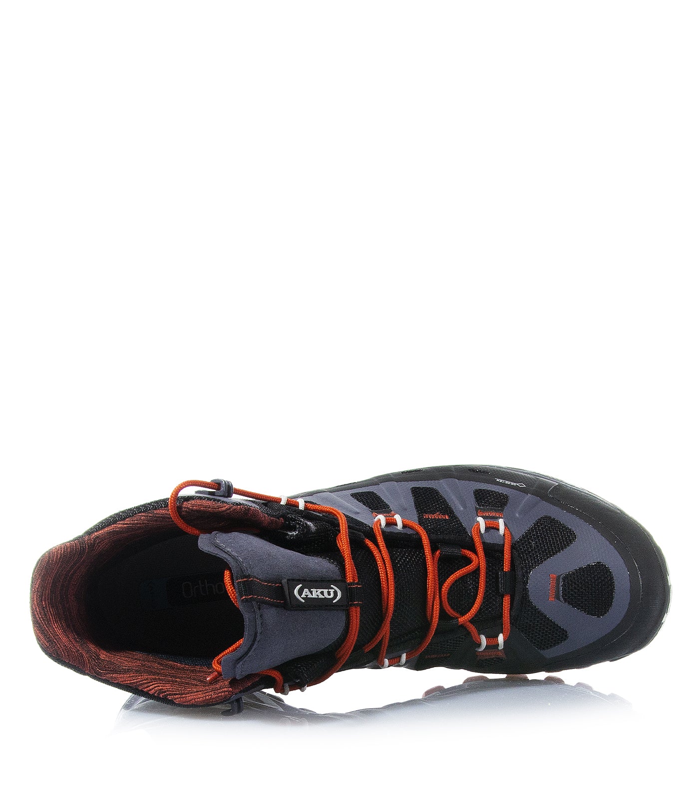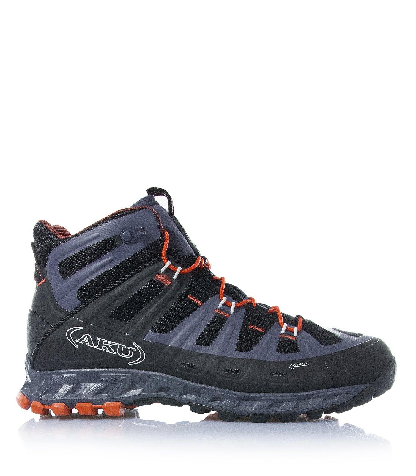 Calzatura per attività multiterrain, perfetta per utilizzi hiking e trekking leggeri, per muoversi velocemente in montagna in totale comfort. Massima leggerezza, traspirabilità e supporto dinamico espresso da suola e tomaia, questultima dotata di nervature sottomesse alla protezione in PU che elimina le cuciture. Il corpo sottopiede – suola – battistrada è sviluppato con tecnologia esclusiva AKU Elica Natural Stride System per favorire lefficienza biodinamica. Il battistarda è Vibram® Selvatica Megagrip con una ottima superficie di contatto con il terreno per una migliore trazione a 360 gradi. Plantare OrthoLite® antimicrobico e traspirante, con un ottimo assorbimento degli urti.