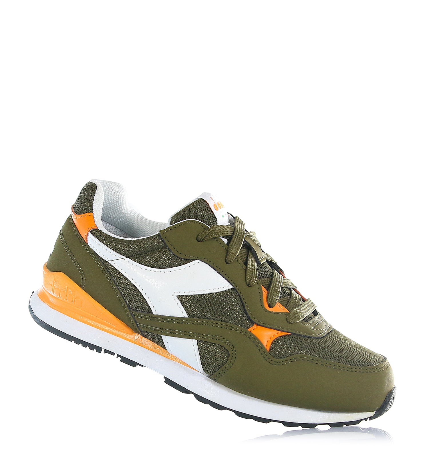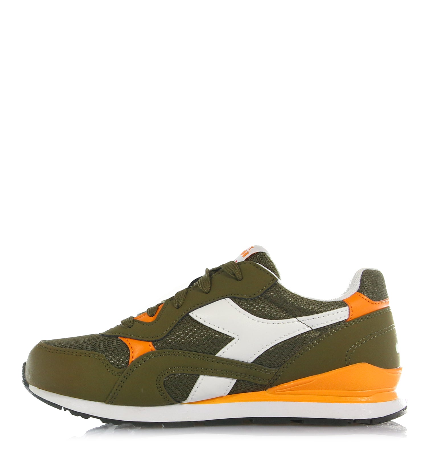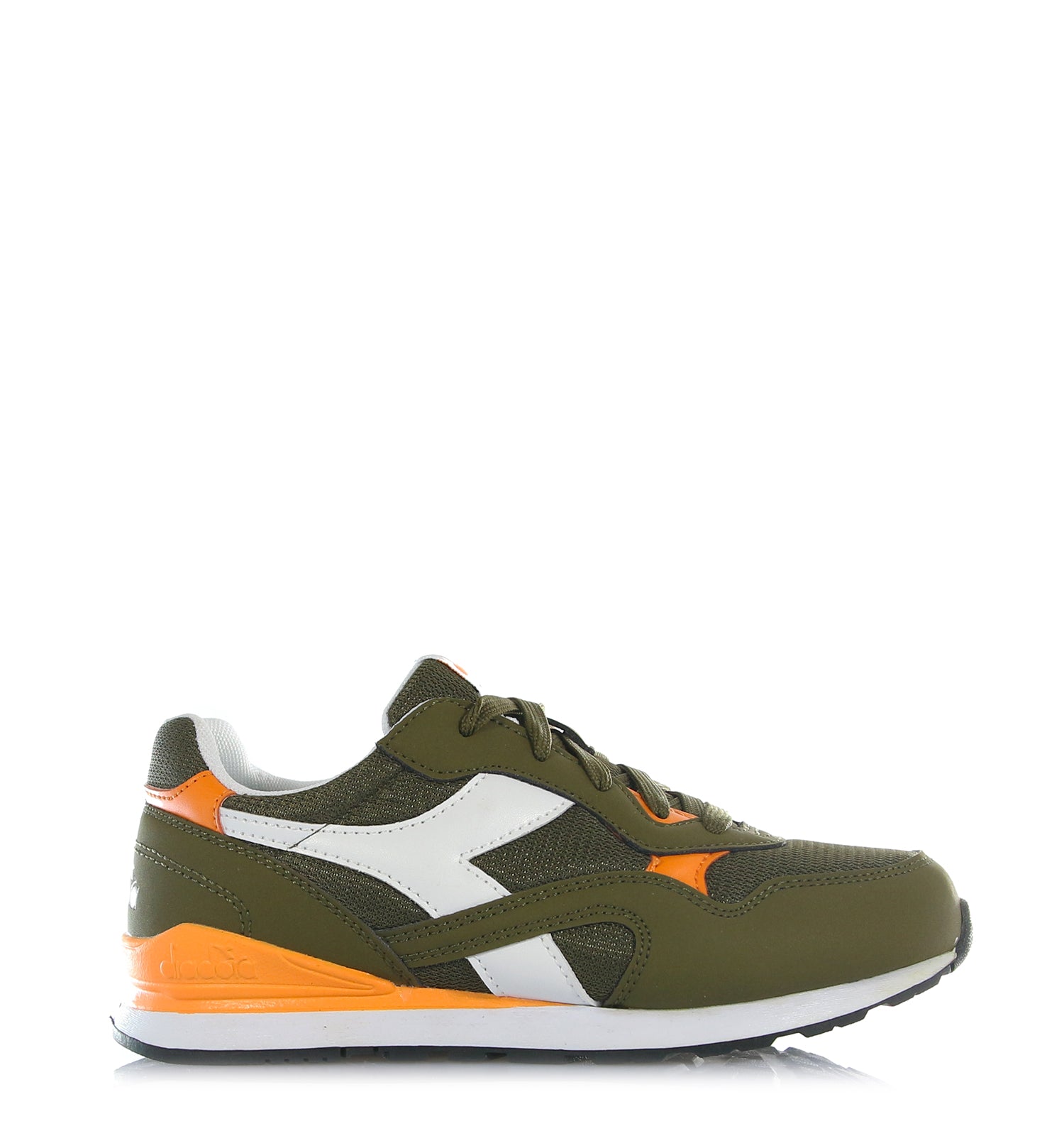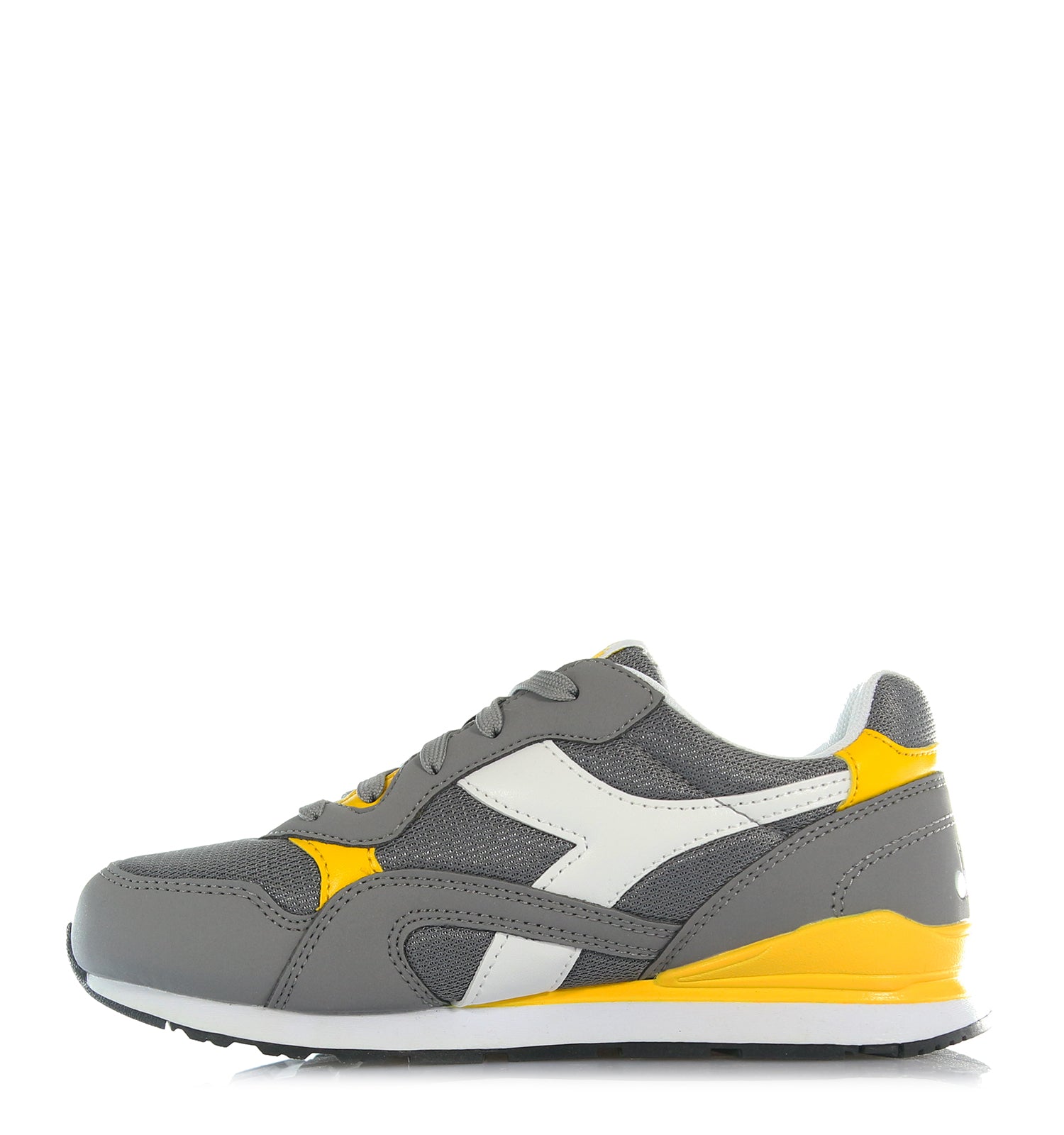 Sneakers per bambini/e in pelle sintetica. Fregio a contrasto e logo diadora 5palle bianco. La suola è bicolore. Il modello n. 92 è un classico modello da retrorunning che unisce comfort e sportività.