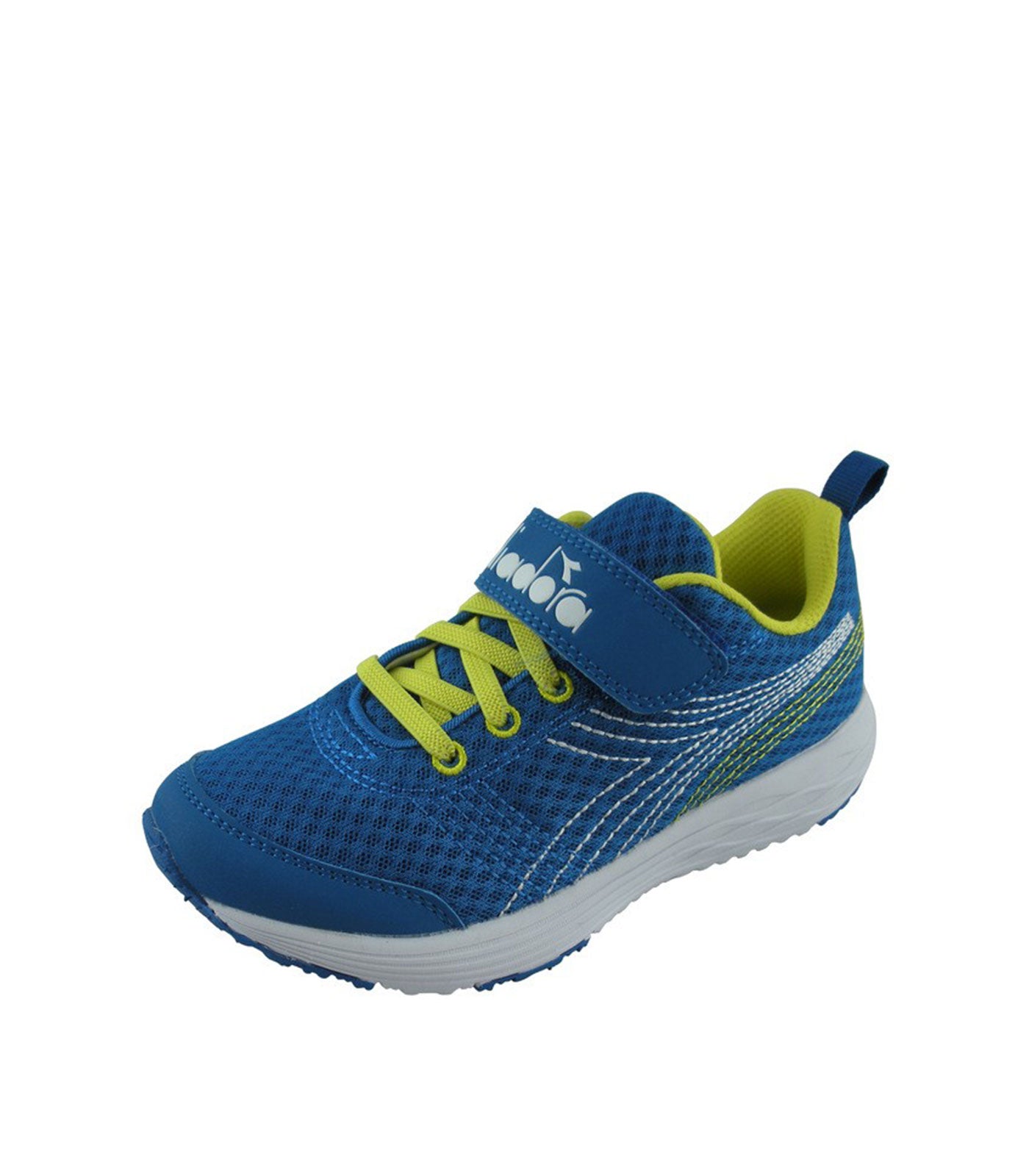Scarpa running bambino con tomaia in nylon mesh e suprellsoft. Chiusura laccio elastico con velcro, plantare in jersey di cotone ed e.v.a. espansa antishock e suola in gomma.