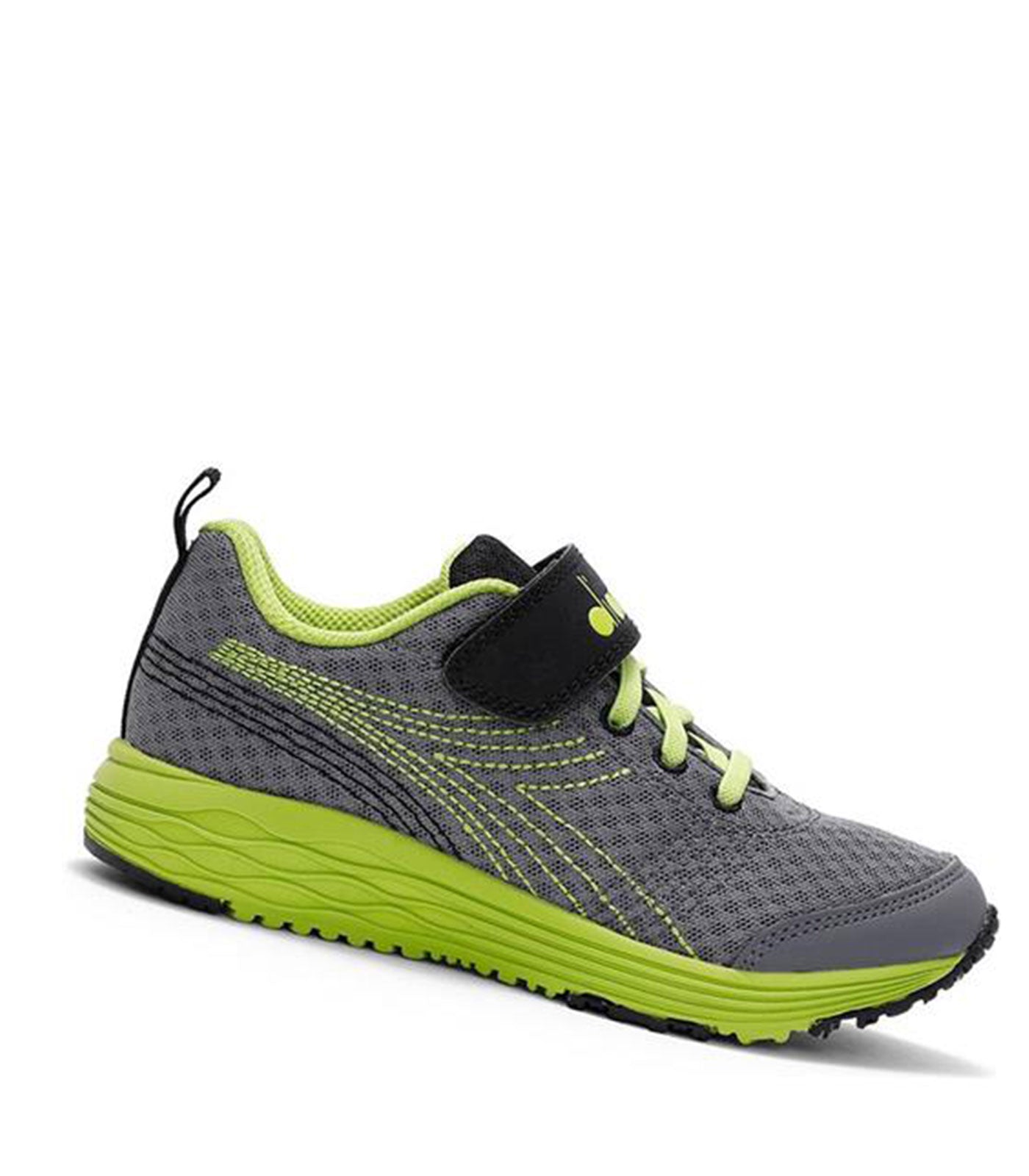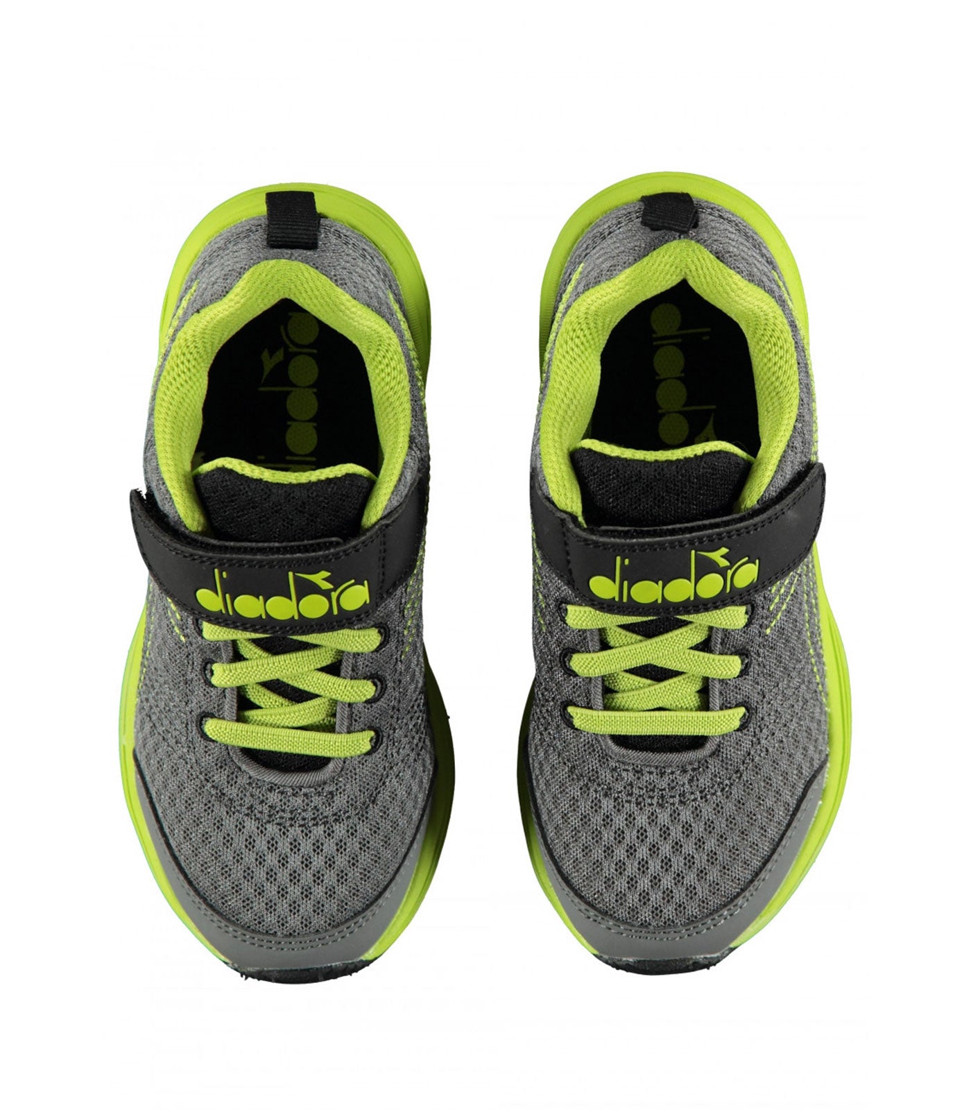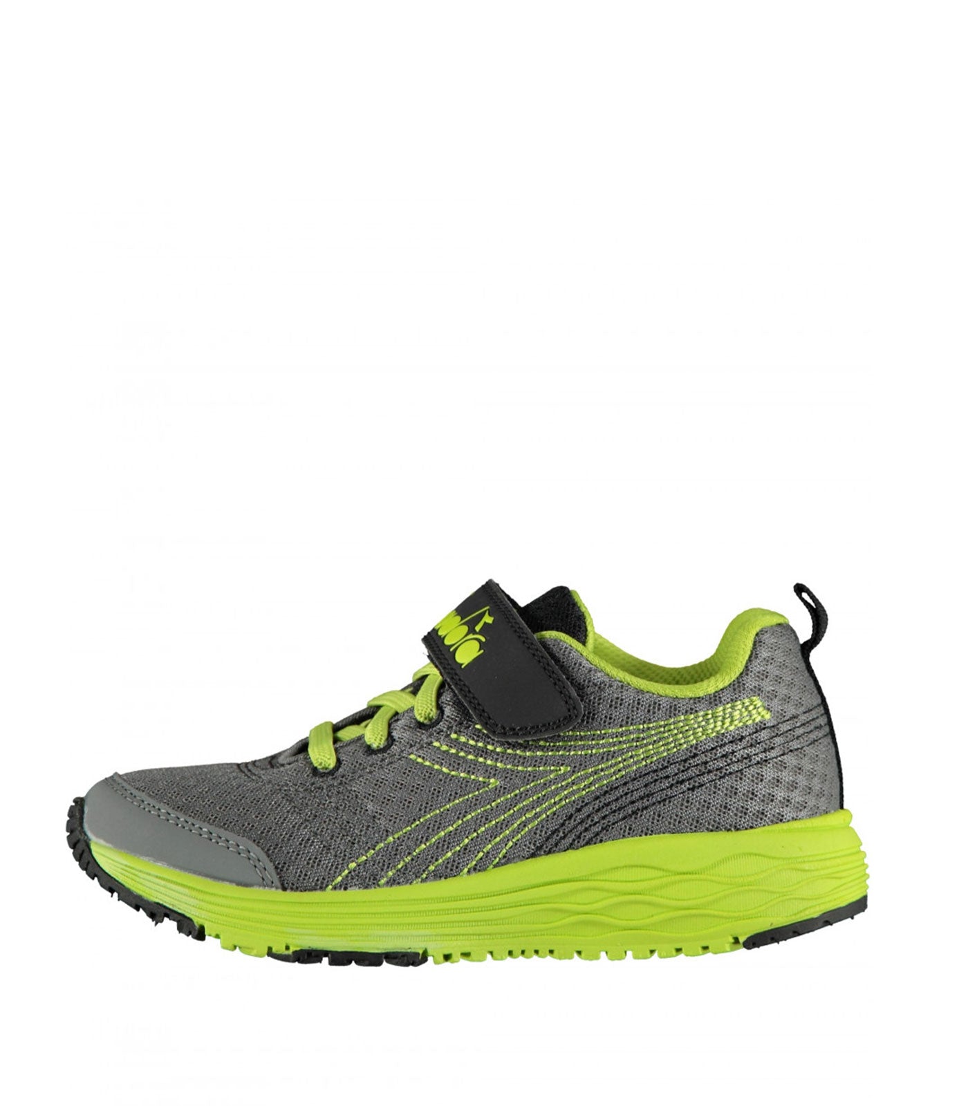 Scarpa running bambino con tomaia in nylon mesh e suprellsoft. Chiusura laccio elastico con velcro, plantare in jersey di cotone ed e.v.a. espansa antishock e suola in gomma.