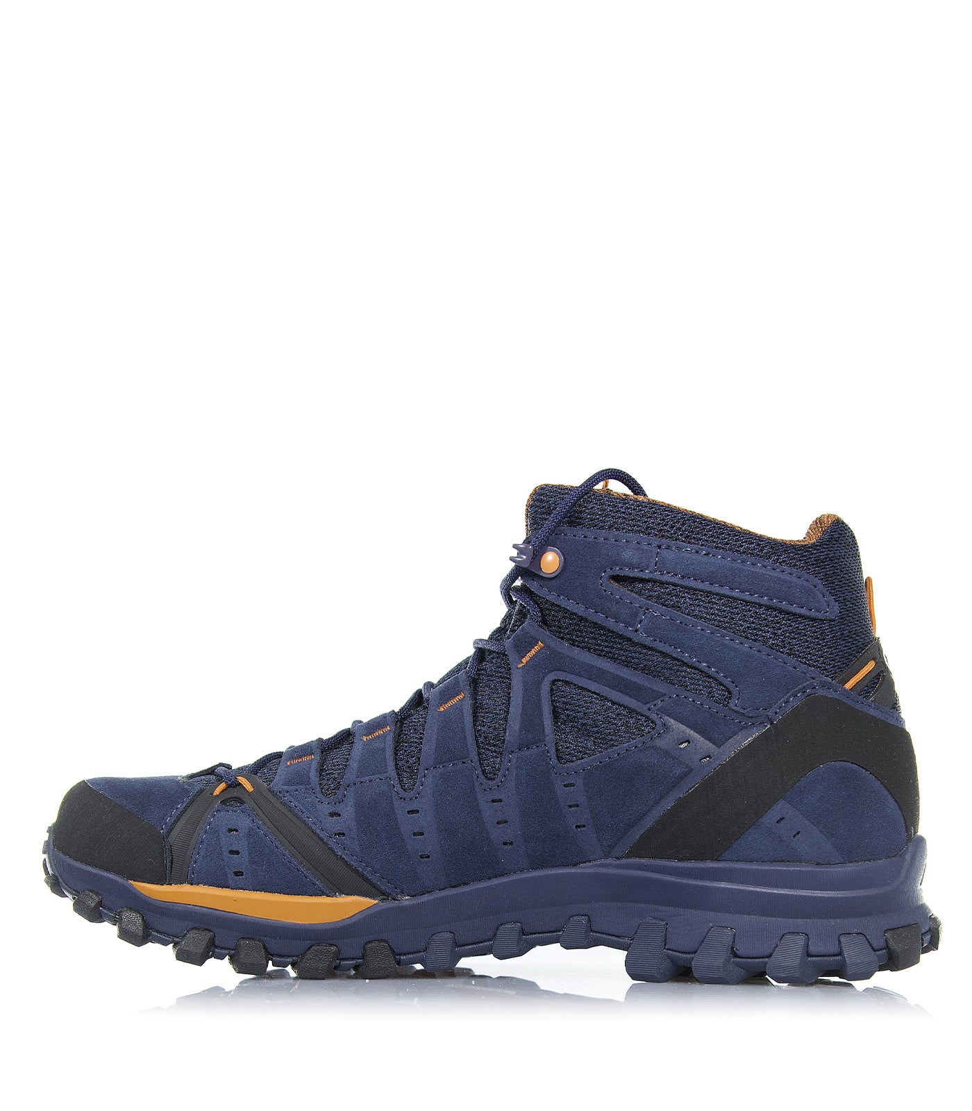 Calzatura leggera, versatile e traspirante, per utilizzo dinamico su terreni di media difficoltà. La tomaia è composta da due strutture: una esterna in scamosciato articolata da elementi indipendenti che avvolgono il piede in modo anatomico; una interna in air mesh con avvolgimento a lembi sovrapposti per assecondare lanatomia del piede. La fodera in Gore-Tex® è di due tipologie: una elastica per la zona del collo-piede e una più protettiva per il resto della fodera. La costruzione asimmetrica della suola e tomaia con lesclusiva tecnologia AKU Elica Natural Stride System garantisce unottimale distribuzione del carico sulla superficie plantare e il miglioramento del meccanismo di rullata. Il battistrada AKU con speciale mescola Tenuta garantisce uneccellente aderenza.