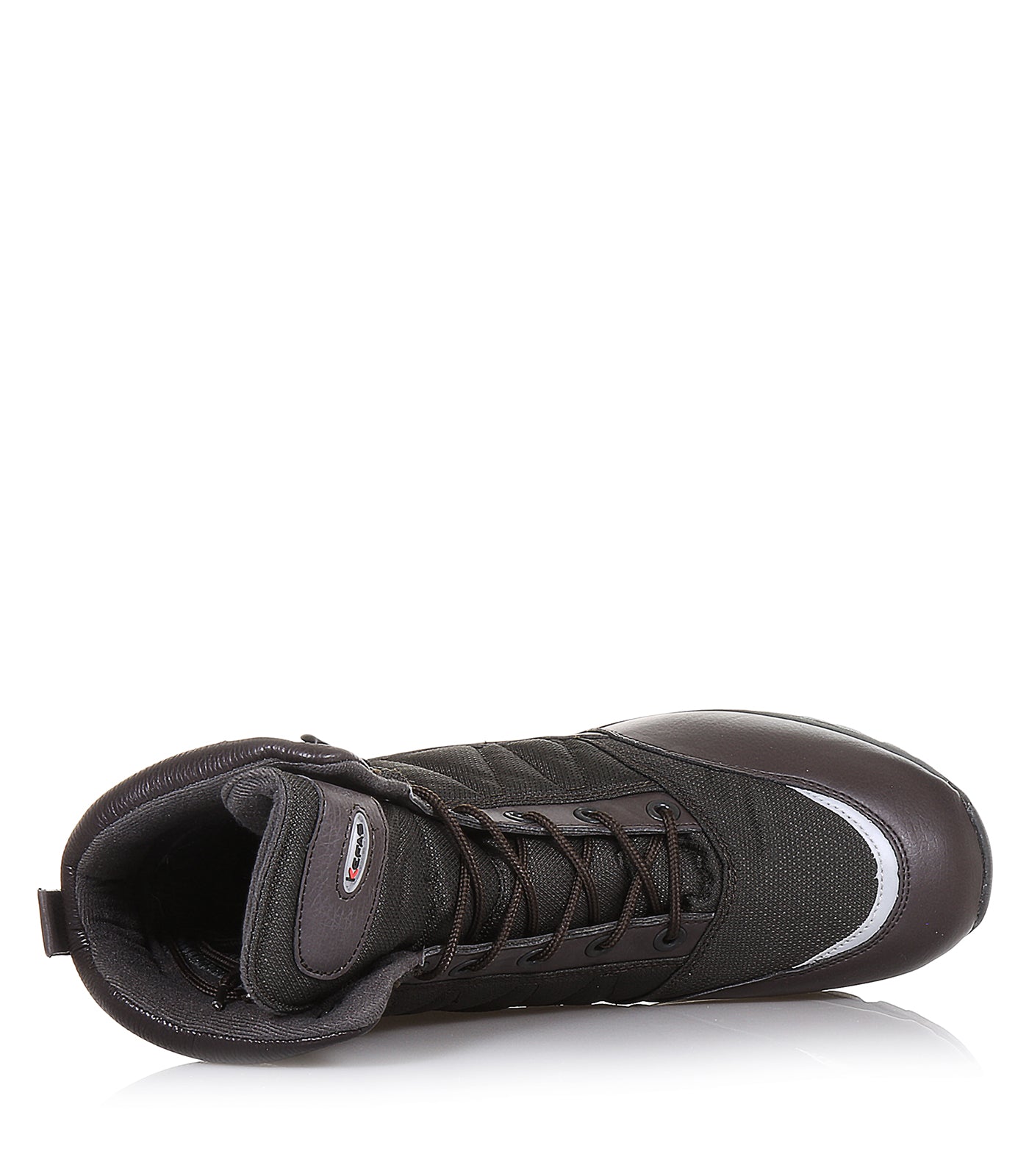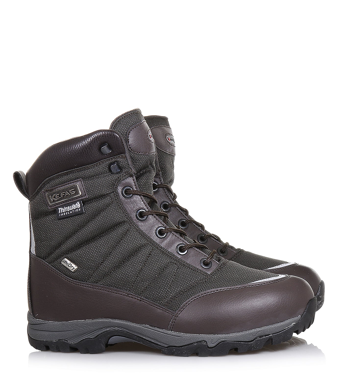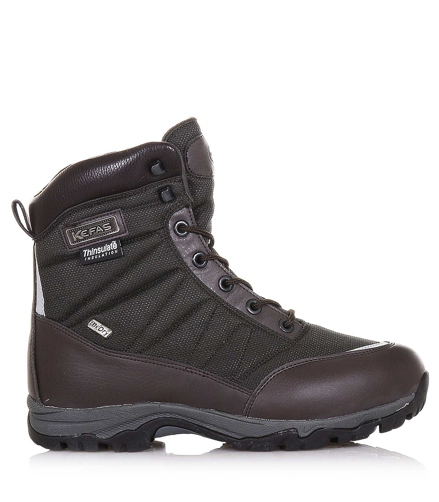 Scarpa, scarponcino uomo citta'/neve con suola antighiaccio, marrone, da montagna, da escursionismo, resistente all'acqua con bio-dry, in materiale sintetico, KEFAS K-WARM. Tomaia in tessuto tecnico, zip interna per un’ottima calzabilità.