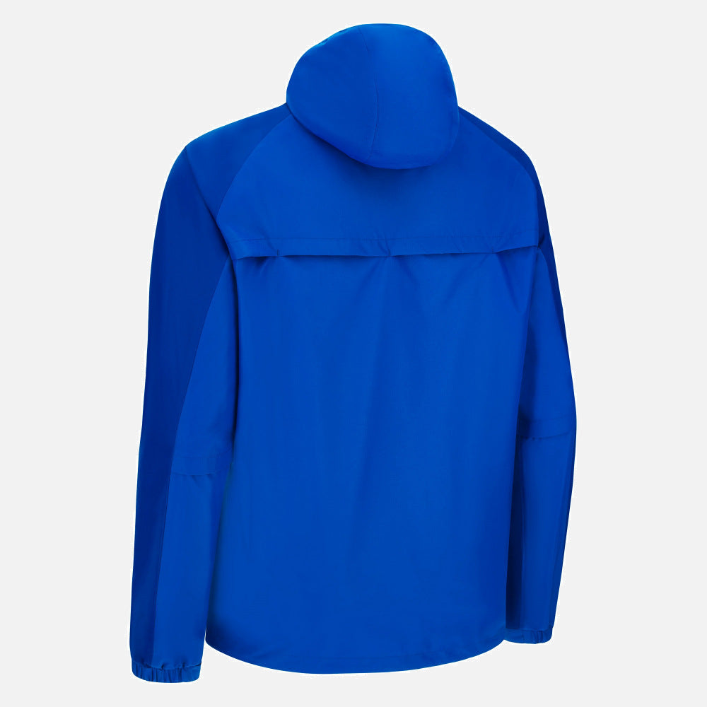 Giacca con cappuccio in tessuto W-proof resistente all'acqua. Tutte le cuciture sono termonastrate per assicurare la massima impermeabilità. Full zip centrale in nylon, rovesciata e con cursore autobloccante e tirante con Macron Hero gommato. Tasche laterali con chiusura a zip. Polsi elasticati con chiusura in velcro e fondo con coulisse regolabile. Dotata di apertura a soffietto su schiena e maniche per garantire l'aerazione.