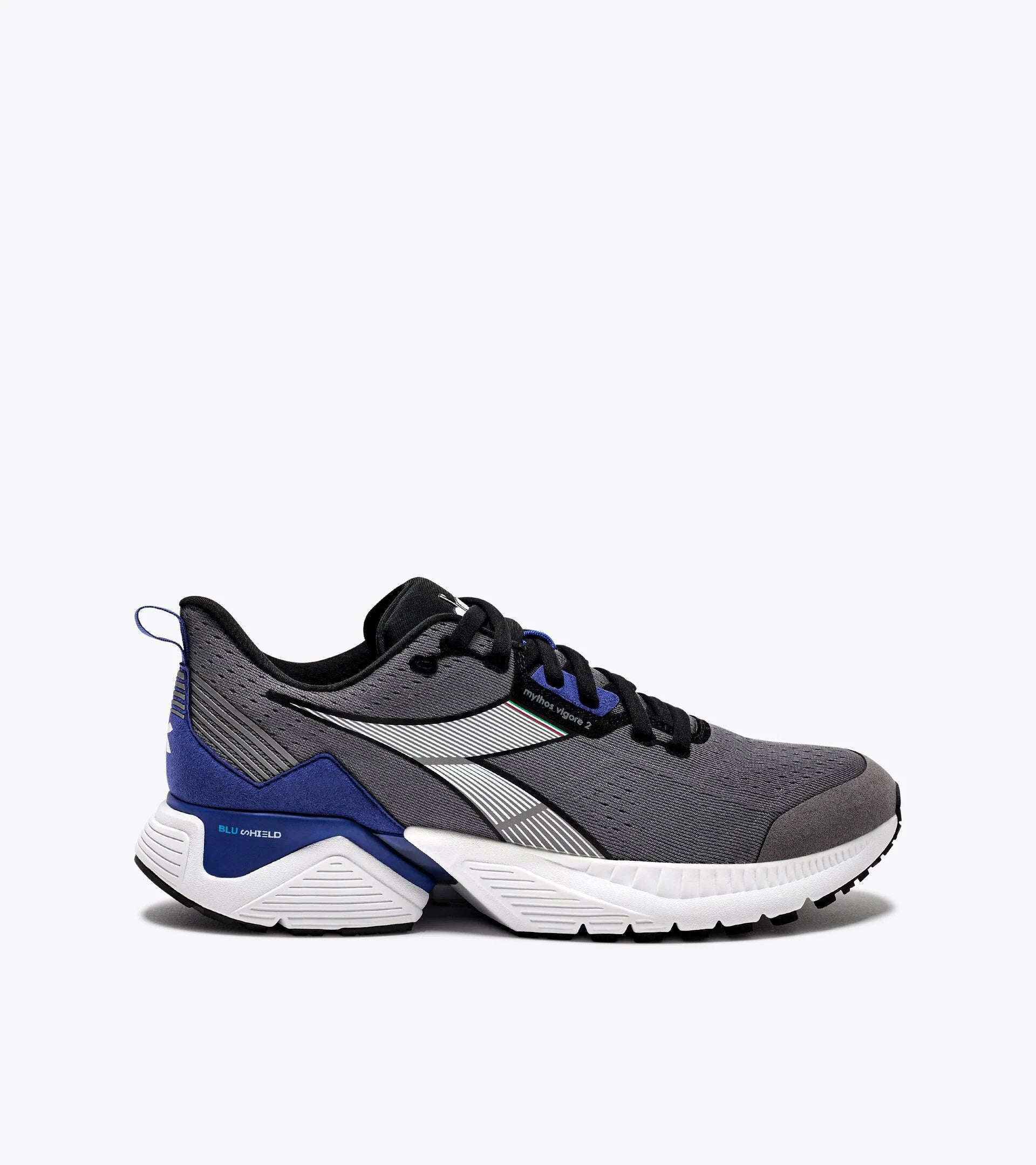 Stabilità e protezione, Vigore offre un comfort impareggiabile e la massima stabilità, senza aggiungere peso o rigidità alla scarpa la tecnologia Blueshield media il comportamento asimmetrico dei piedi, trasformando l'appoggio irregolare in una corsa bilanciata. Controllo dell'iperpronazione. La tecnologia Diadora TRX (Transposed Running Xperience) fornisce controllo e sostegno a chi tende a iperpronare