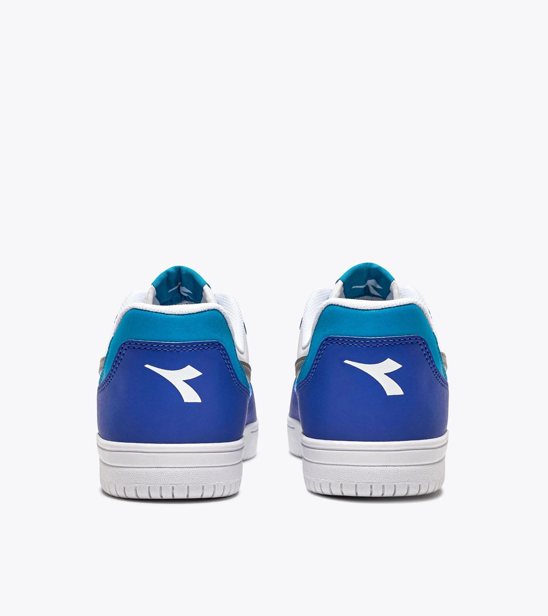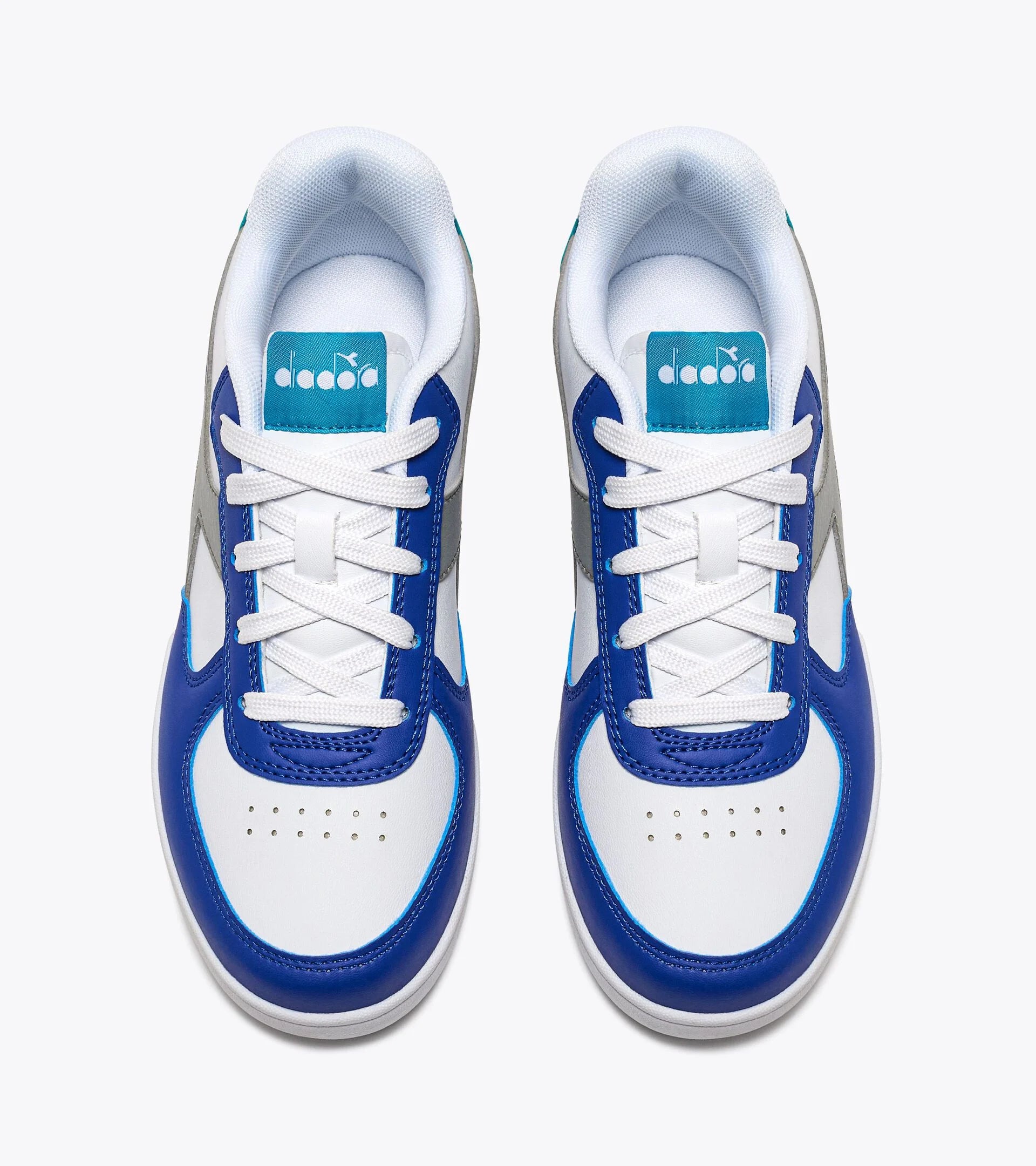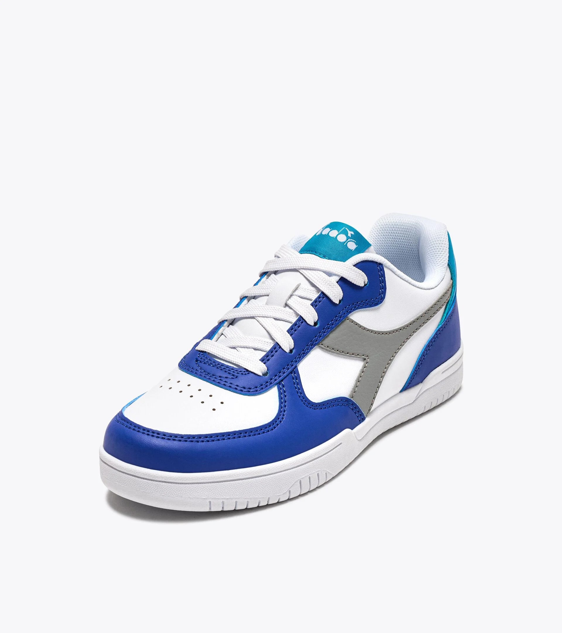 Sneakers per bambini e ragazzi in pelle sintetica con chiusura a zip. Il modello Raptor Low GS, come il corrispetivo da adulto, si arrichisce del fregio a contrastoe il collarino in tessuto.
