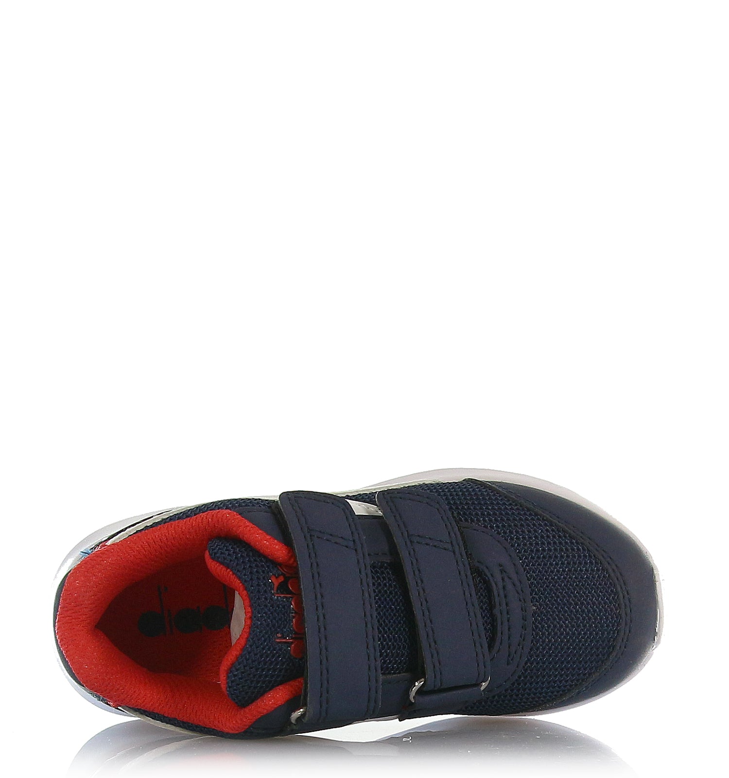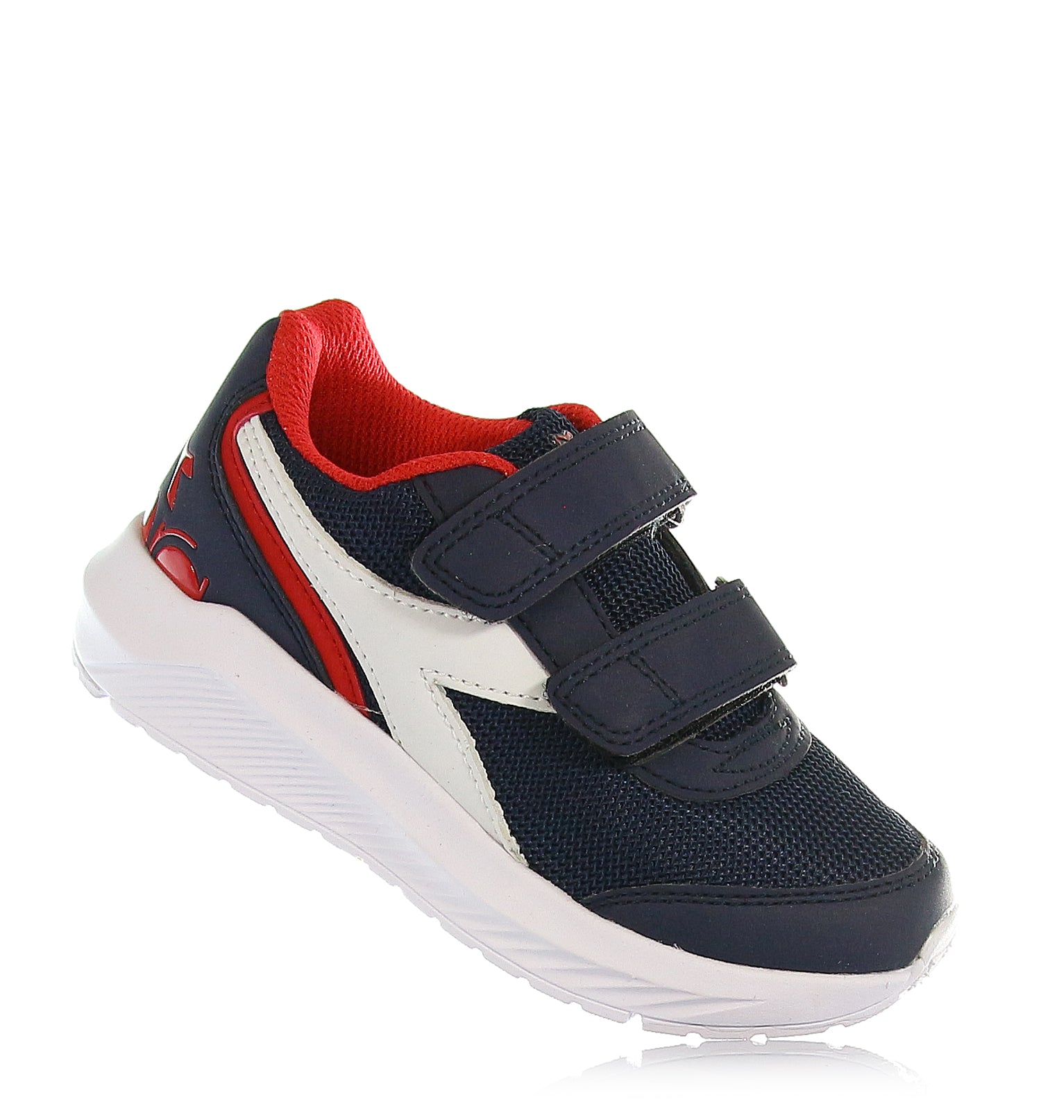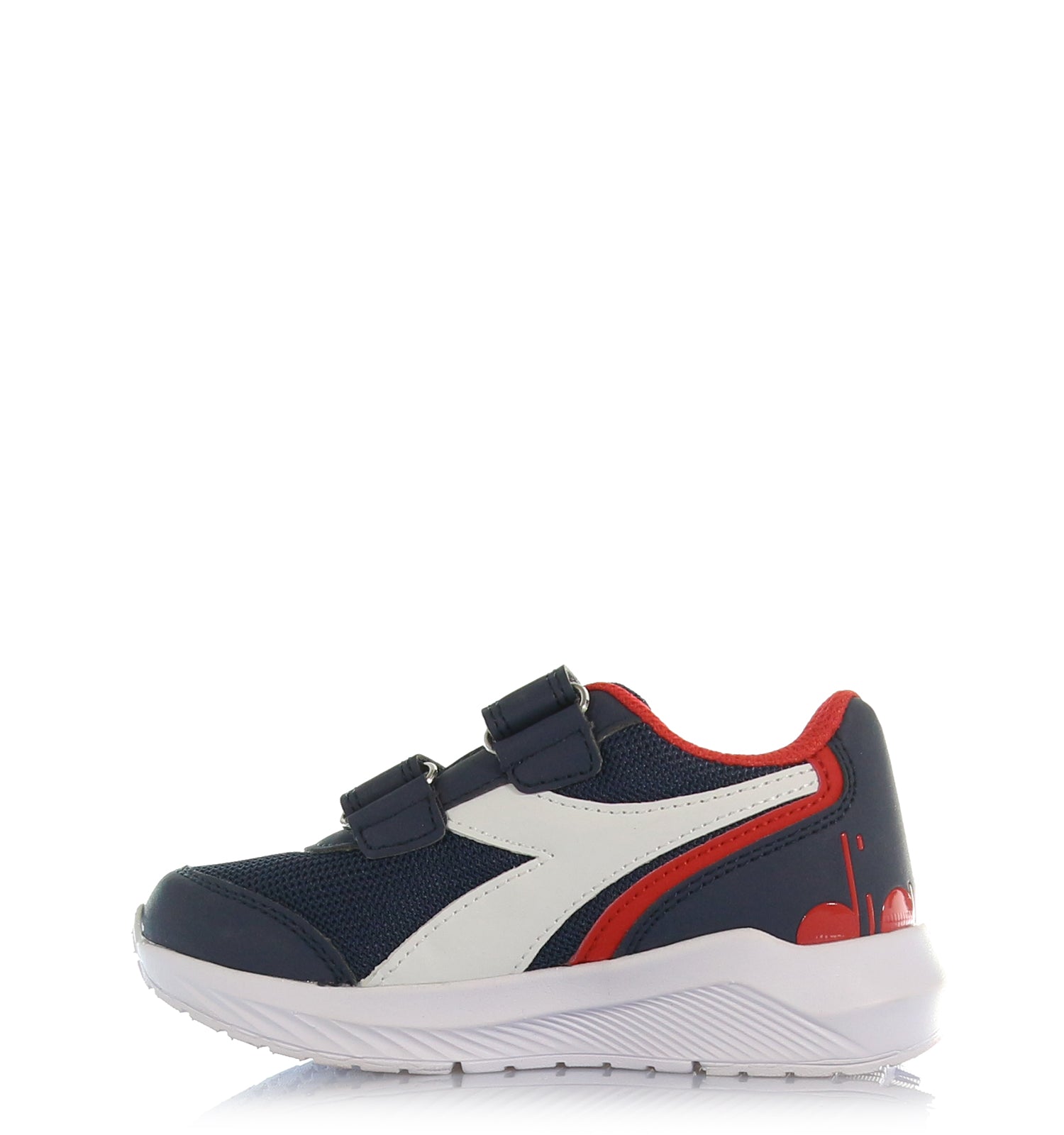 Scarpa running bambino con tomaia suprellsoft, plantare in jersey di cotone ed e.v.a. espansa antishock e suola in gomma. Varianti colori: Grigio celeste/ rosso nero/blu. Chiusura a velcro.